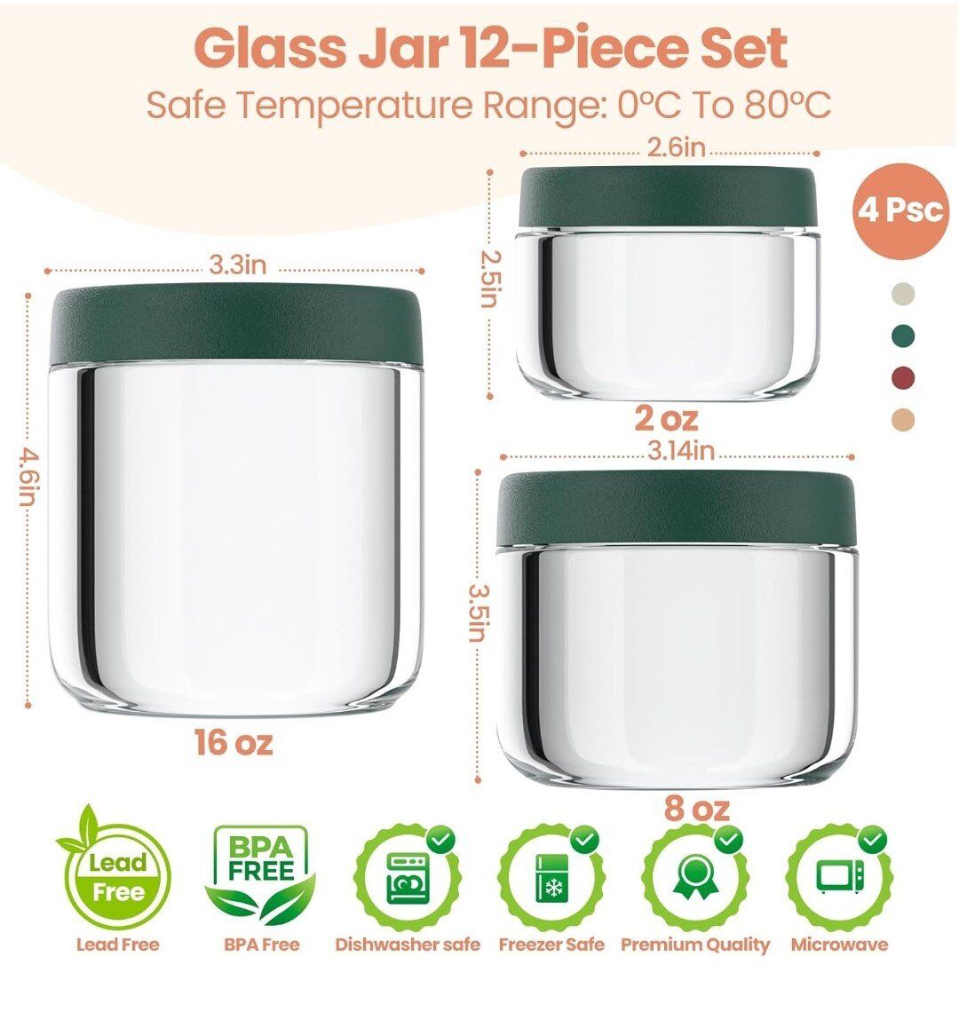 16oz, 8oz & 4oz Glass Jars with Airtight Lids, Wide mouth Mason Salad jars, Glass Food Storage Containers for Yogurt Chia Pudding Snacks Cereal & Spices. New. Cash only please