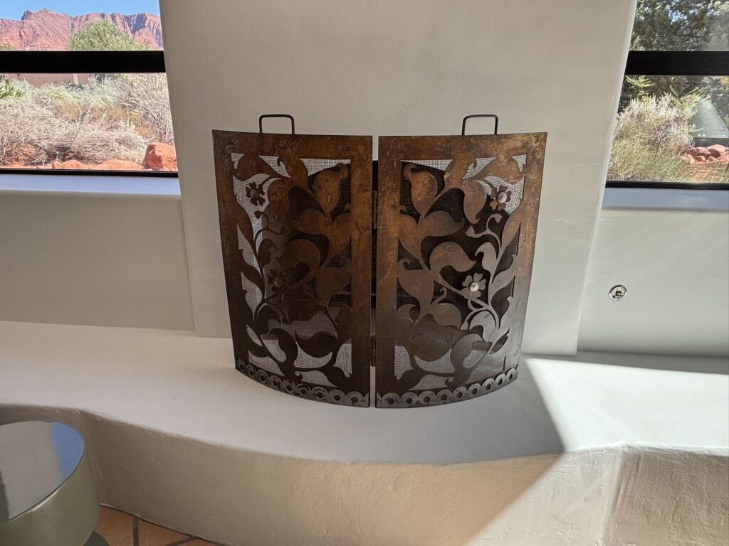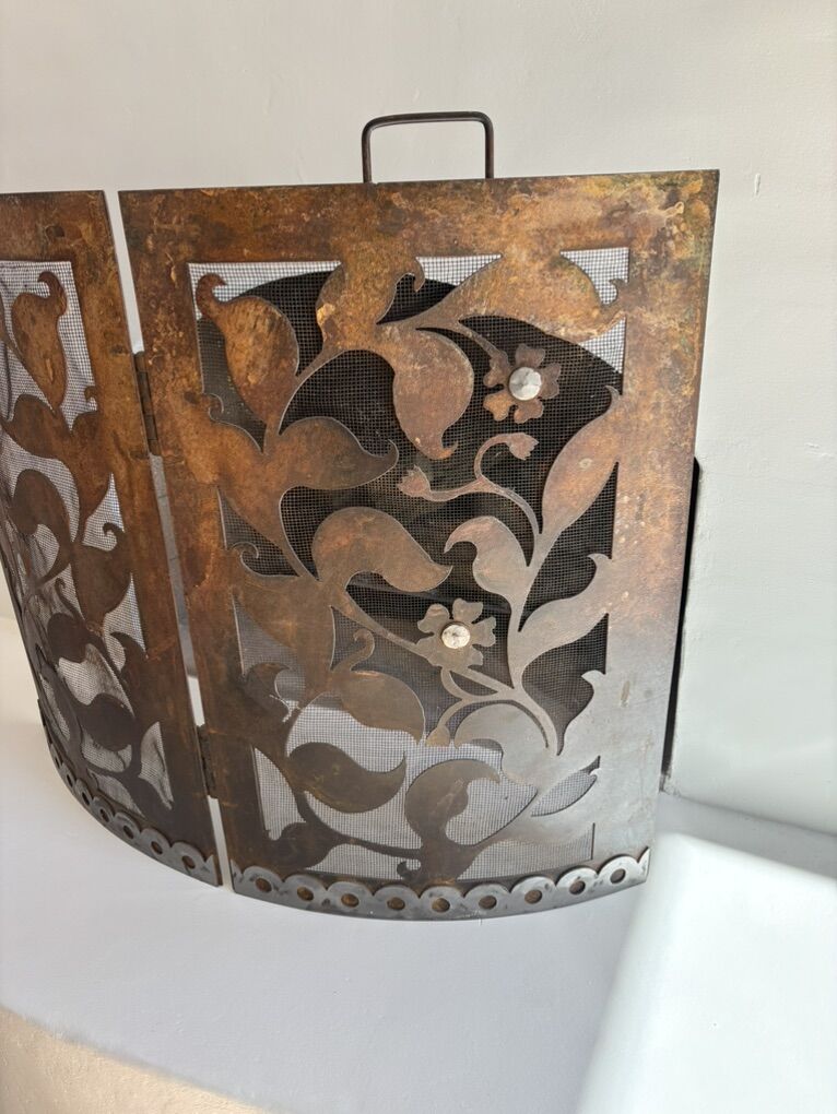 Gorgeous rustic, copper colored fireplace screen