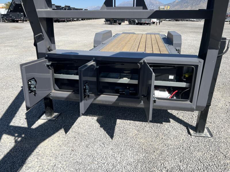 Stock #: RM1632 Trailer Specs: Color: Shadow Grey Powdercoat Overall: Length: 30'8" Width: 8'6" Interior/Bed: Length: 22' Width: 7'0" Weight: 5,455 lbs. | GVWR: 16,000 lbs. | Payload: 10,545 lbs. Axle(s): 8,000 lb. Dexter Torsion Braked Axle w/ EZ Lube Hubs Tire/Wheel: ST235/80R16 | Load Range E Coupler: Type: Gooseneck | Size 2 5/16" | 7-Way 12V Connector 6"x12lb I-Beam Main Frame | 3" Channel Cross-Members | 16" OC 5 Year Dexter Axle Warranty 3 Year Structural Warranty 1 Year Limited Warranty Trailer Includes Following Options: 14 Ply LR-G Tire Upgrade Dual Hydraulic Jacks Standard Features: Winch Plate: Winch Ready Winch Roller Front Bump Stop 4-6 Weld On D-Rings (Depending On Length) 3/16" Steel Diamond Plate Fenders Flush Mounted D-Rings Recessed Spare Tire Carrier Front Divided Toolbox 2" Treated Wood Deck Adjustable Coupler All-Weather Wiring Harness 10K Drop Leg Jack Safety Chains Breakaway System w/ Charger LED DOT Approved Lights Powdercoated WASATCH TRAILER SALES - LARGEST TRAILER SELECTION IN UTAH Springville: (801) 528-1581 | 1180 S 2000 W, Springville UT, 84663 View More Inventory: www.wasatchtrailer.com