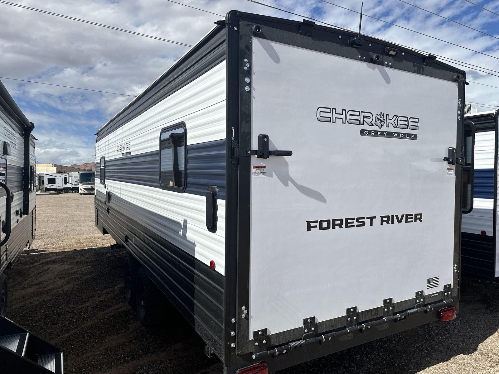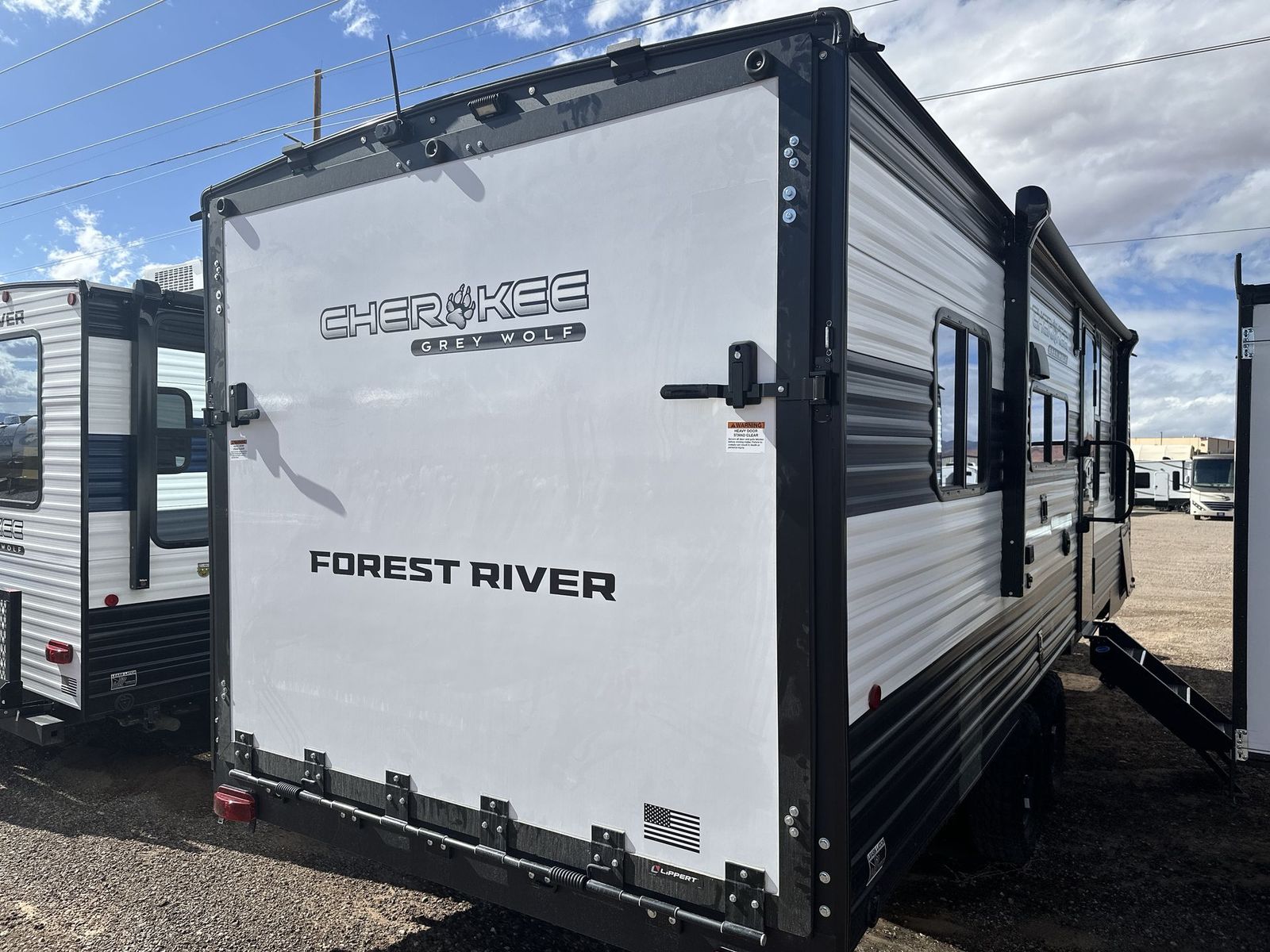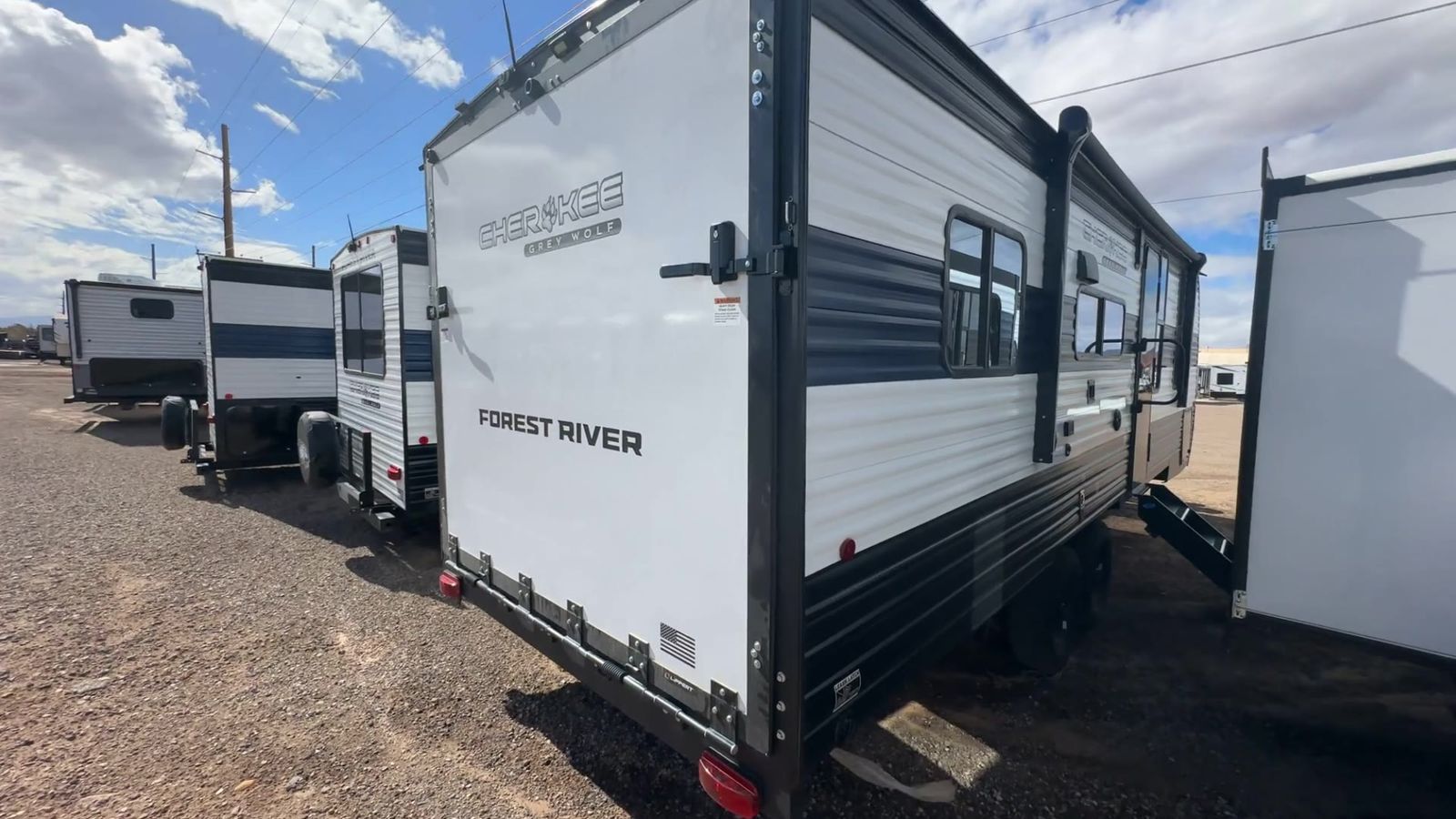 Forest River Cherokee Grey Wolf toy hauler 22RR highlights: Fold-Down Sofas Large Pantry Master Suite Outside Storage 12' 9" Cargo Space You will love this Cherokee Grey Wolf toy hauler with a rear ramp door for loading and unloading your toys and gear. If you position thefold-down sofasup against the wall, you will have even more room for extra gear when you are moving down the road. Set up camp and easily create a great dining area with the removable table between each fold-down sofa. You can also create your best meals in a breeze with the airy fryer or cooktop. A large pantry allows you to pack all of the snacks and canned goods you need for your adventure. You will appreciate the master suite up front for a great night's rest on the RV king bed along with easy access into the dual-entry bath. The Cherokee Grey Wolf by Forest River feature distinctive features, at-home comforts, and durable construction materials so you can enjoy your RV for years to come, plus they are outstandingly affordable! You can choose between travel trailers, toy haulers, and even fish houses, depending on the camping style you prefer. You'll find many convenient amenities both inside and outside, along with comfortable seating and sleeping spaces, and plenty of storage for your personal belongings and camp gear!