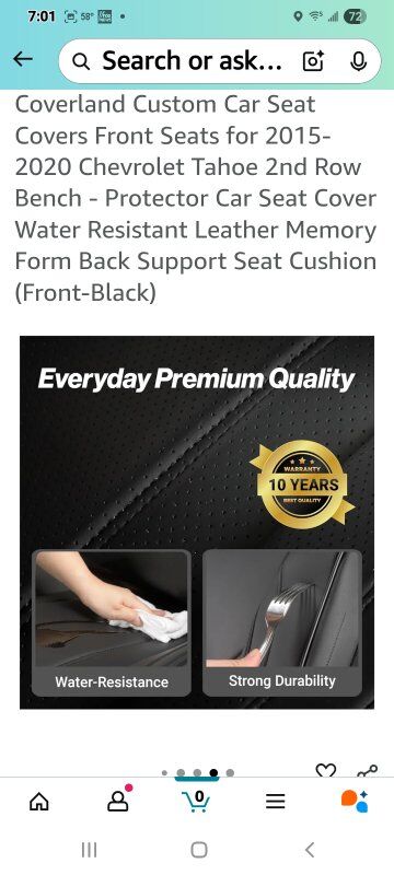 VenmoNew in Box! Chevrolet Tahoe Seat Covers for FRONT SEATS ONLY for 2015-2020 -Color- Black -Brand-Coverland