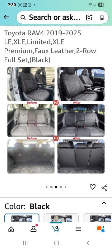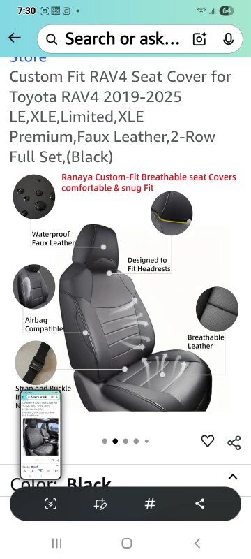 1:1Tailored Fit for Toyota RAV4 (2019–2025) Custom-designed seat covers to fit the exact dimensions of Toyota RAV4 seats from 2019 to 2025 LE,XLE,Limited,XLE Premium. Premium Faux Leather – Stylish & Durable Made of high-quality waterproof faux leather that is smooth, wear-resistant, and easy to clean. Designed to enhance your RAV4’s interior while protecting the original seats. All-Round Protection – Full Set Coverage Includes front and rear seat covers, headrest covers, and armrest protection where applicable. Guards against spills, dirt, UV damage, and pet hair. Maintains Safety & Functionality Airbag-compatible stitching, seatbelt openings, and split-folding support ensure your RAV4 functions remain fully accessible. Easy DIY Installation Comes with elastic straps, hooks, and clear instructions for a hassle-free installation.