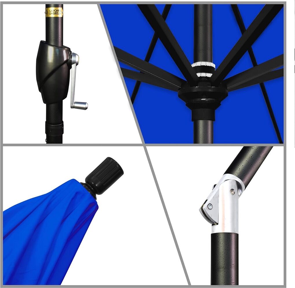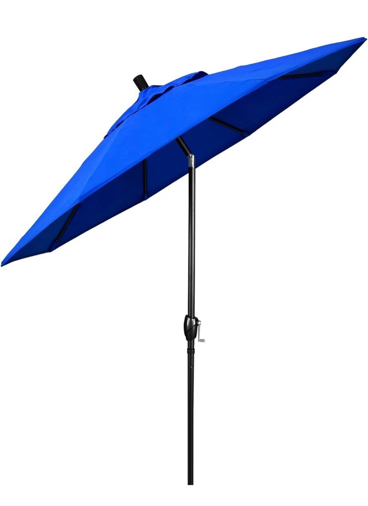 9' Round Aluminum Umbrella, Crank Lift, Push Button Tilt, Black Pole, Sunbrella Overall dimensions (l x w x h): 108 x 108 x 102 Push Button Tilt blocks out the sun from any angle; Frame is constructed of rust free aluminum Vibrant, Solution Dyed Fabric allows the canopy to stand up to the elements Great for Tables or as a Free Standing Umbrella Optional base is not included and must be purchased separately