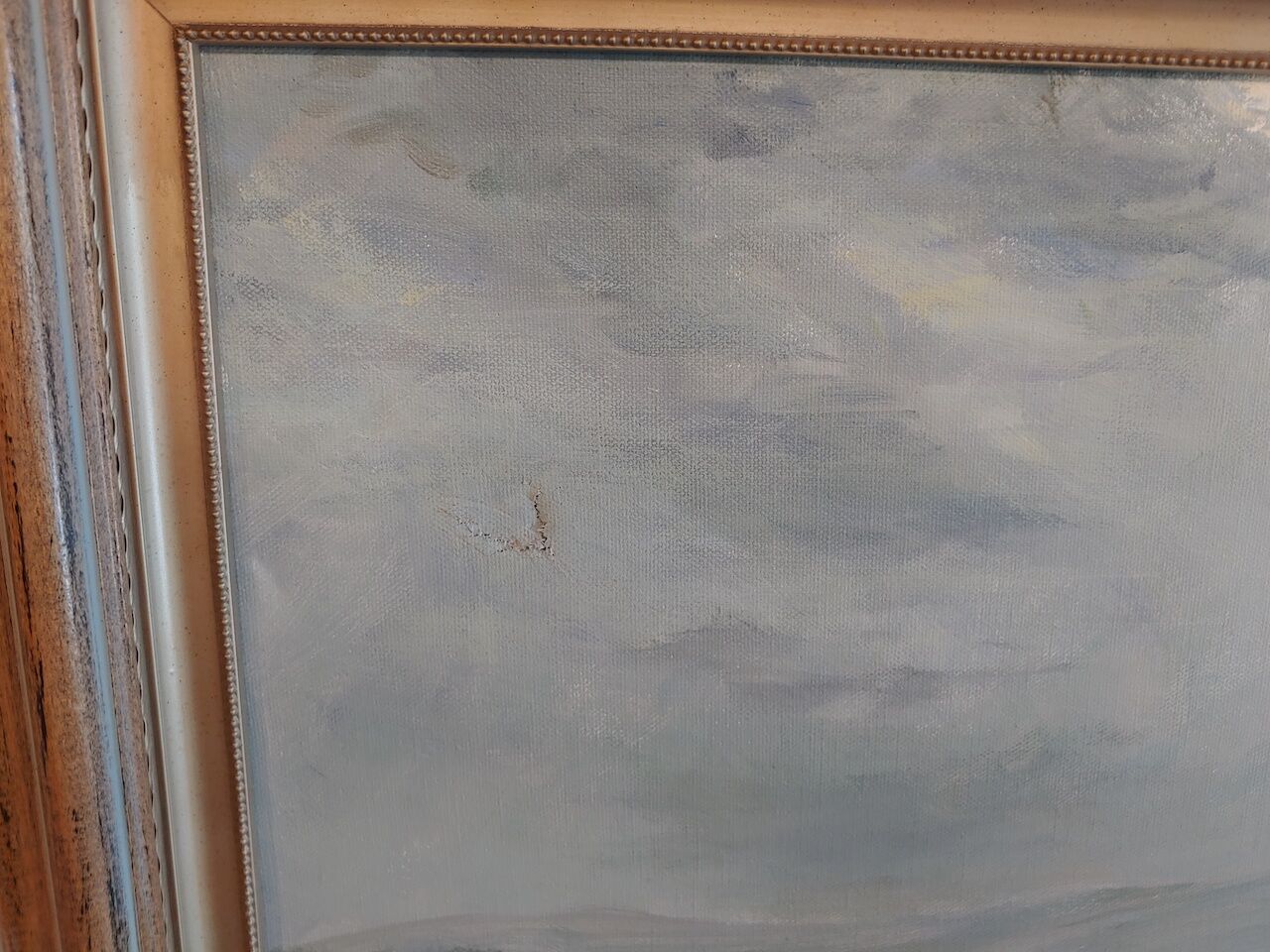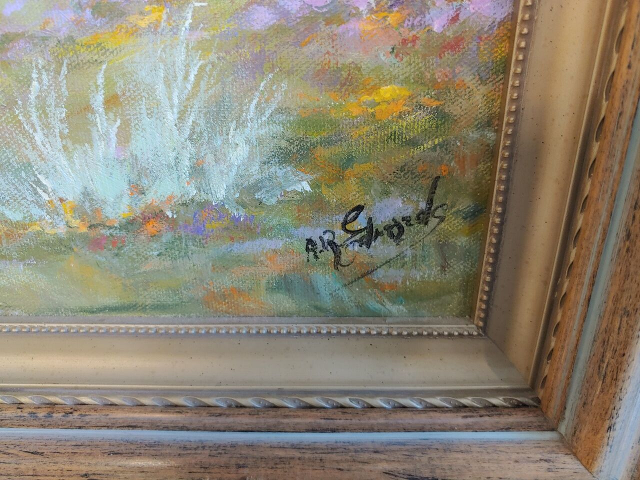 Oil by the infamous Painter / Author Alicja R. Edwards. Purchased directly from her home studio we have enjoyed this beautiful view for many years. It is now time to share the joy with someone else. It does have a small tear in the upper left corner but from a distance does not mar the magnificence of this piece.