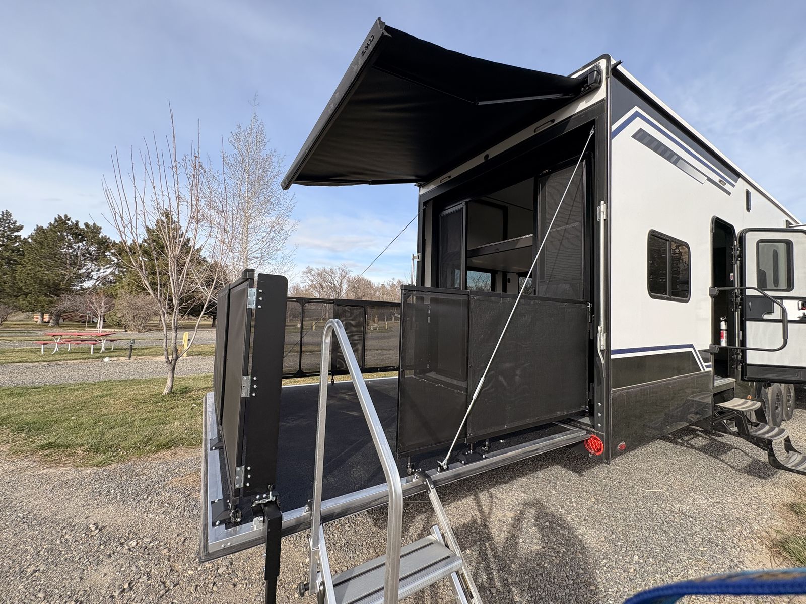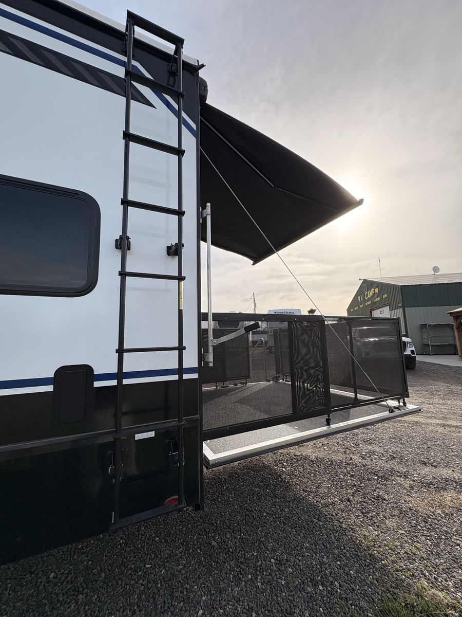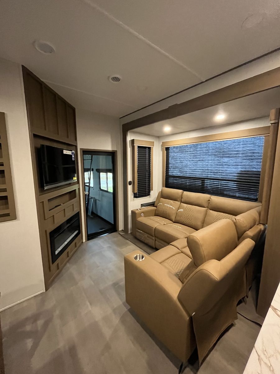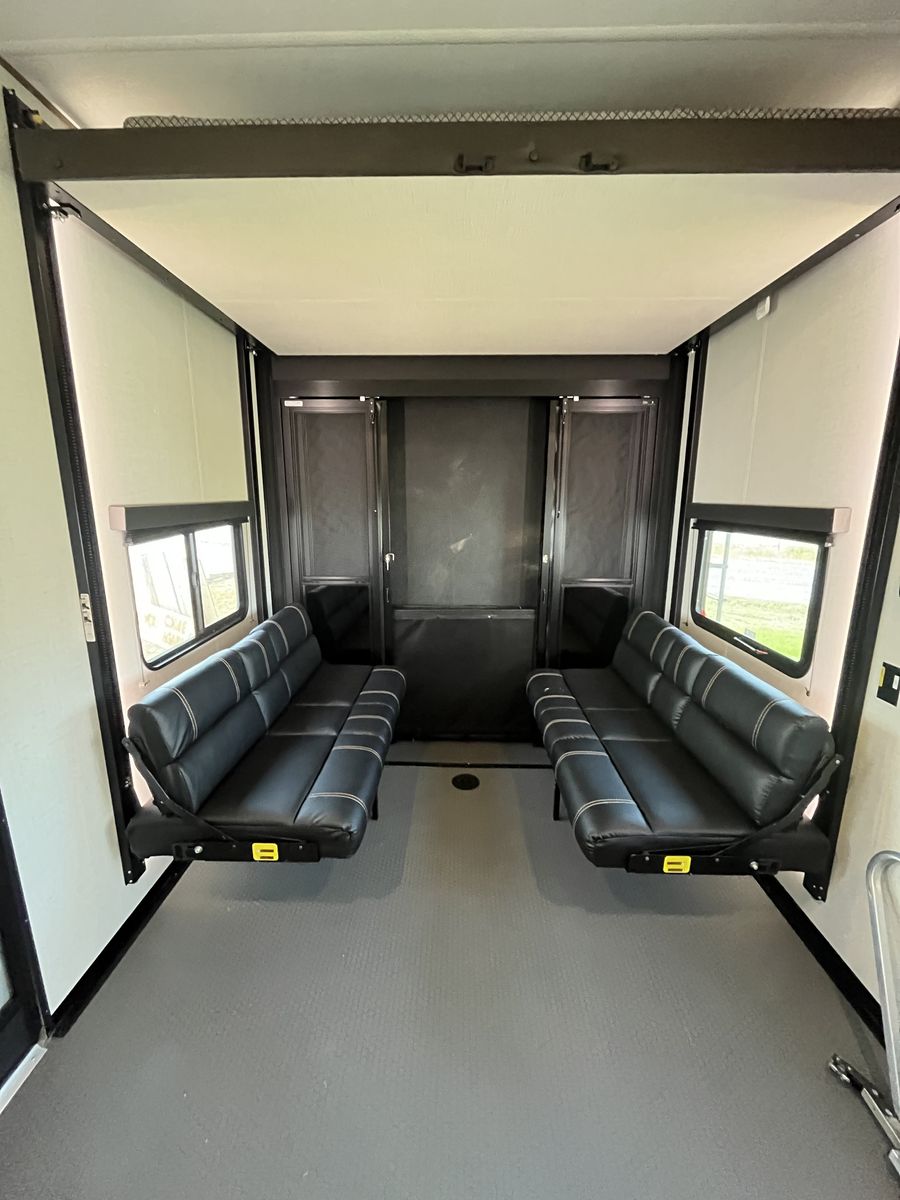 Load up your toys and head out in style with this 45’ triple-slide luxury toy hauler featuring a 15’ garage and all the space your family needs!