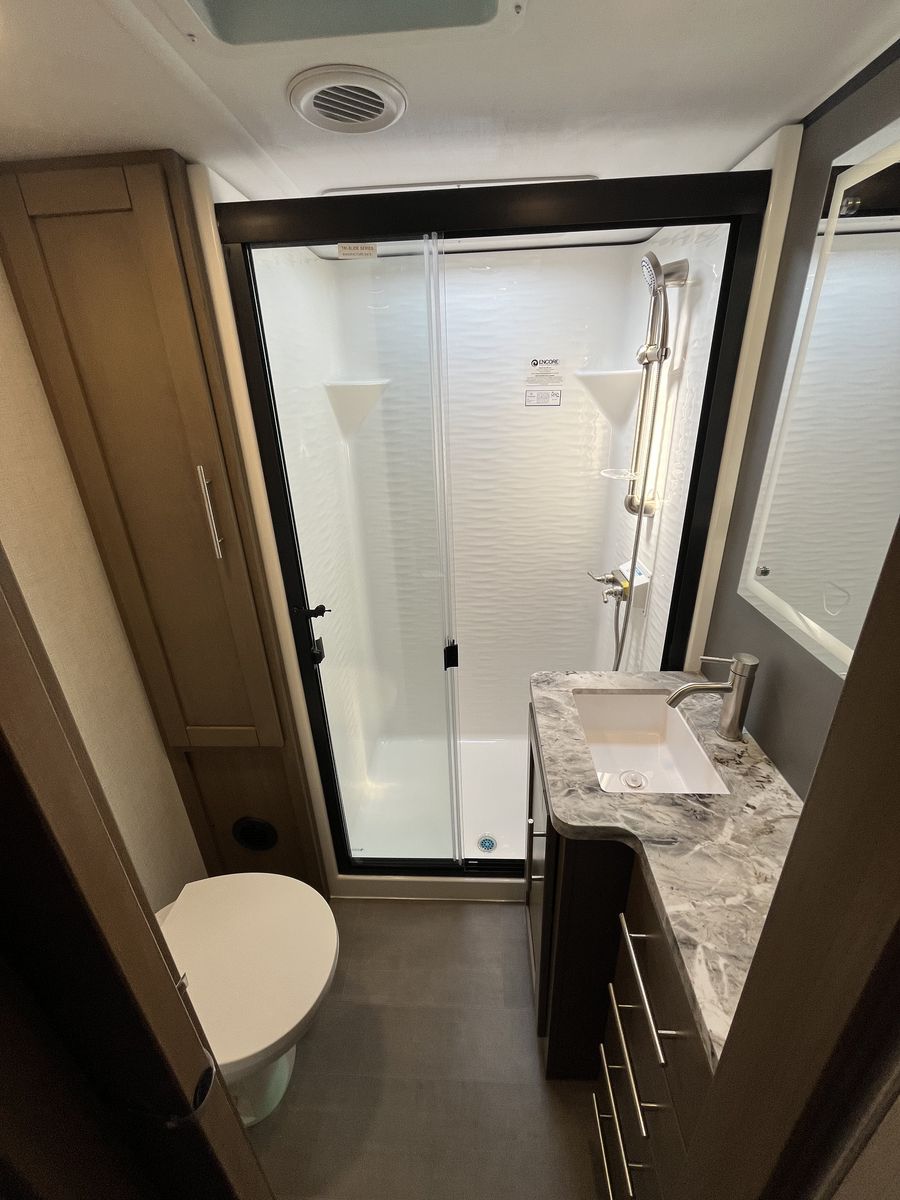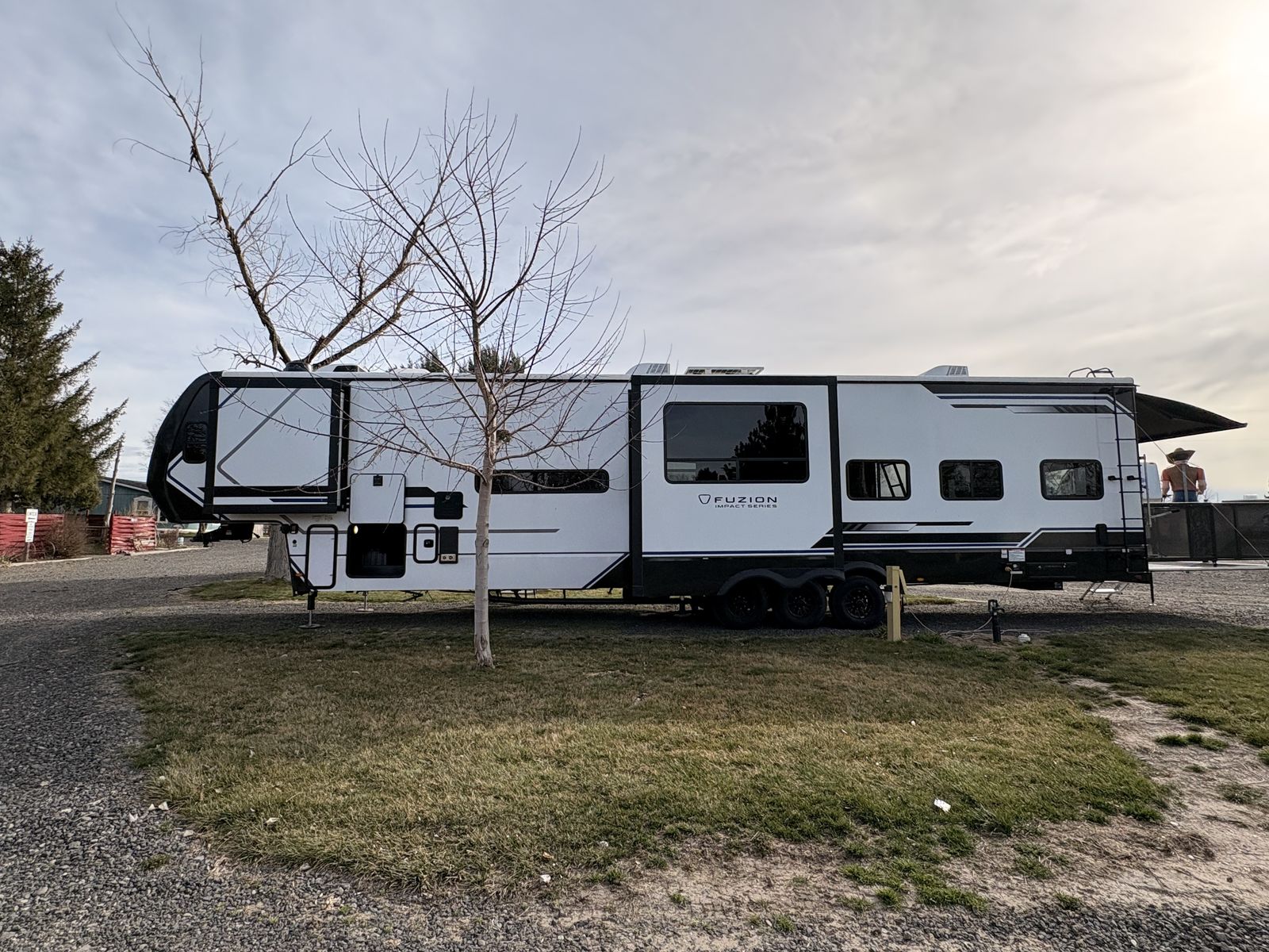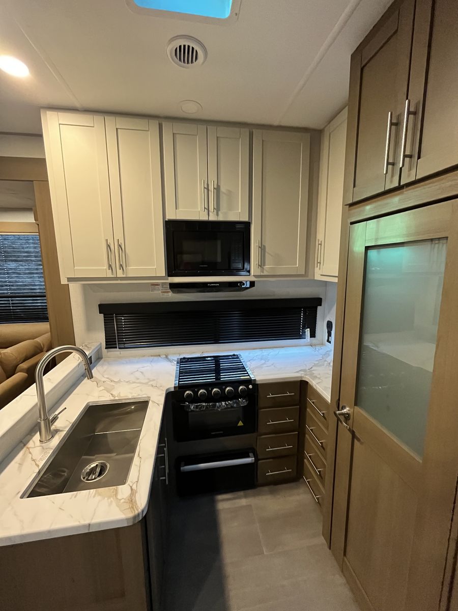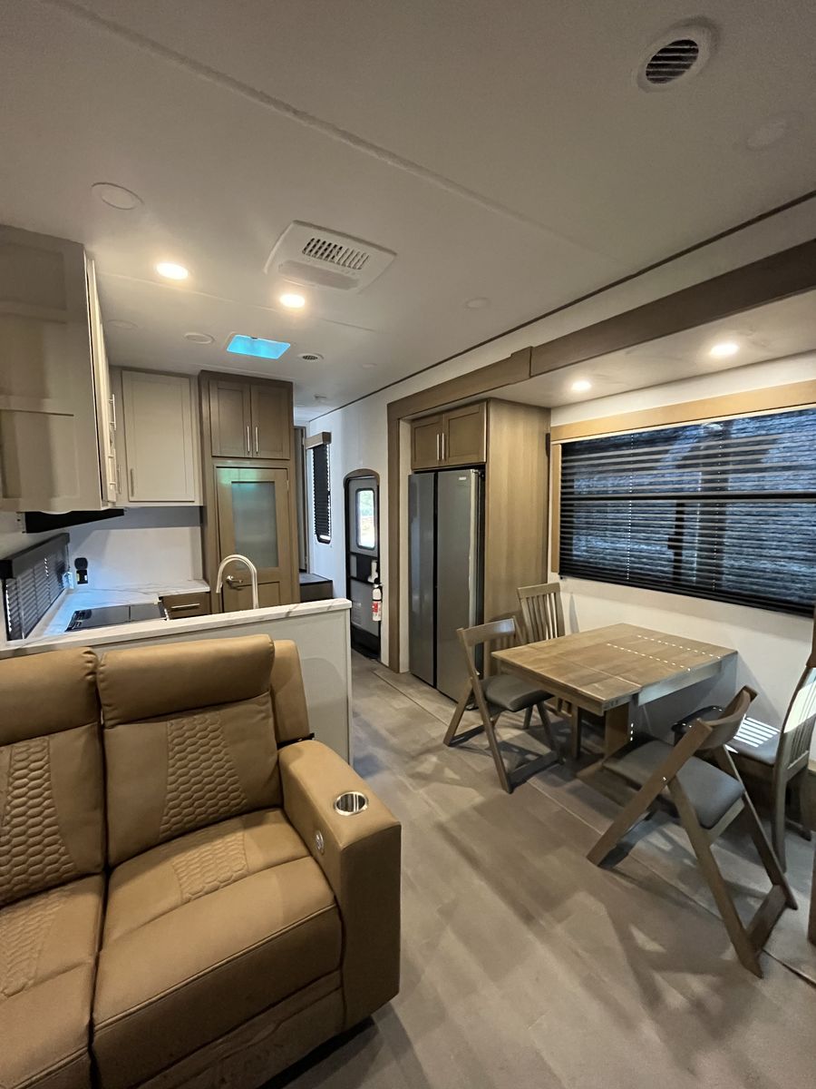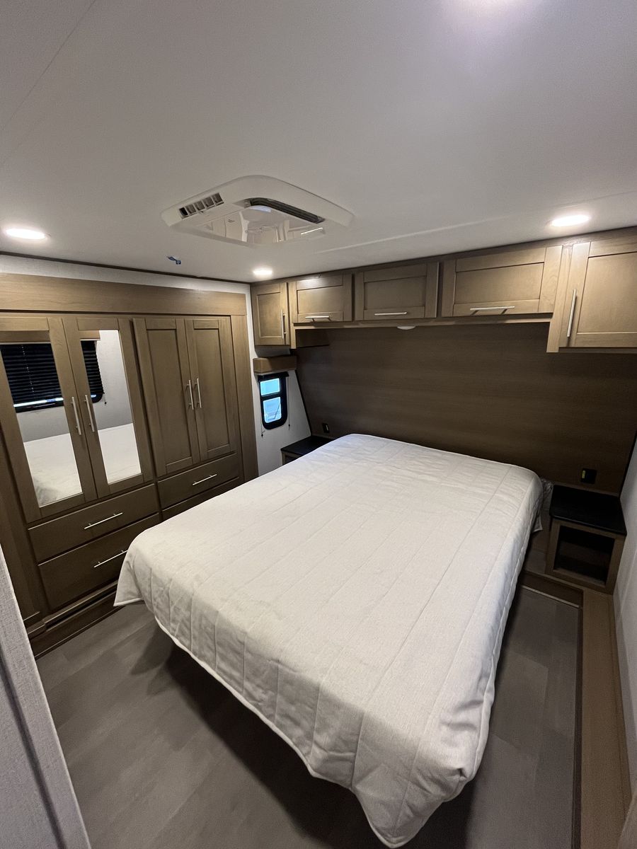 Load up your toys and head out in style with this 45’ triple-slide luxury toy hauler featuring a 15’ garage and all the space your family needs!