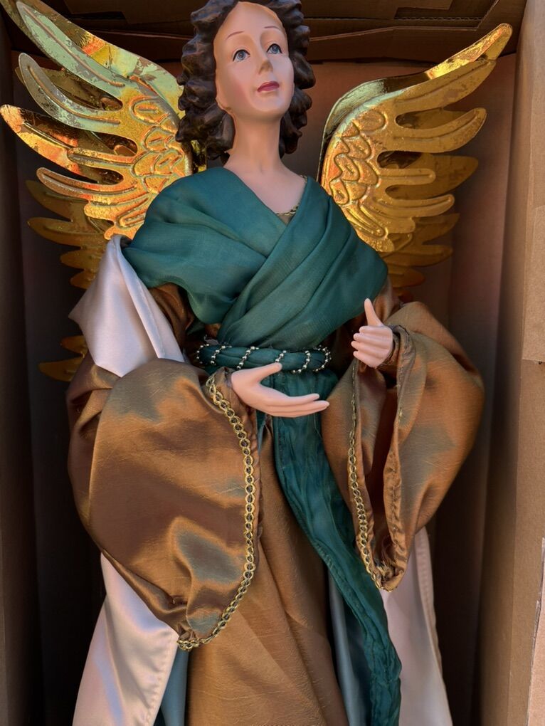 VenmoHoliday Graceful Angel 🪽 • $60.00 or BEST Offer • Beautifully Hand Painted Face • For Indoor Use • 32” Height • Layered Fabric Gown • OBO Any Questions ? Please Message Me