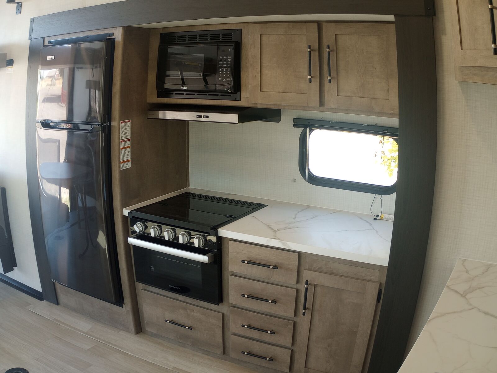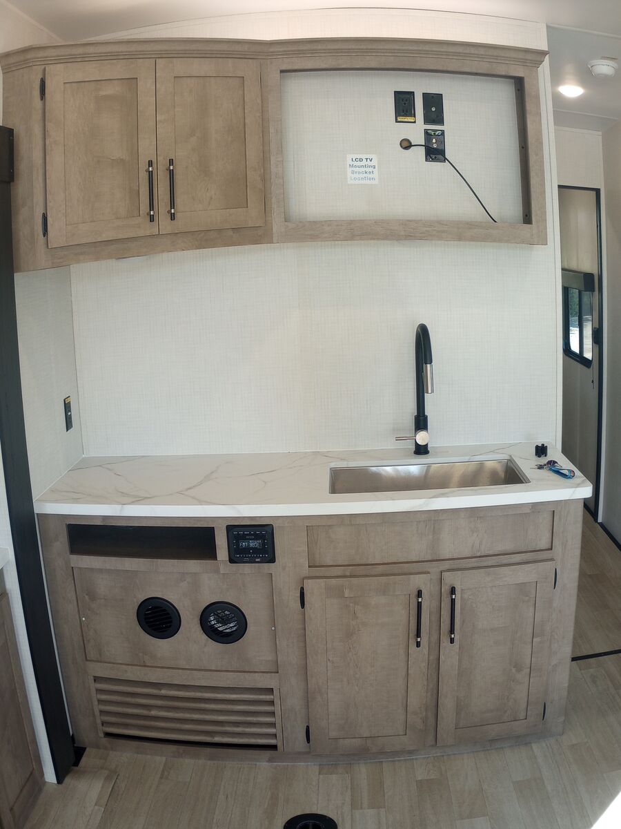 Full kitchen – 3-burner range, microwave, 12V 10cf fridge