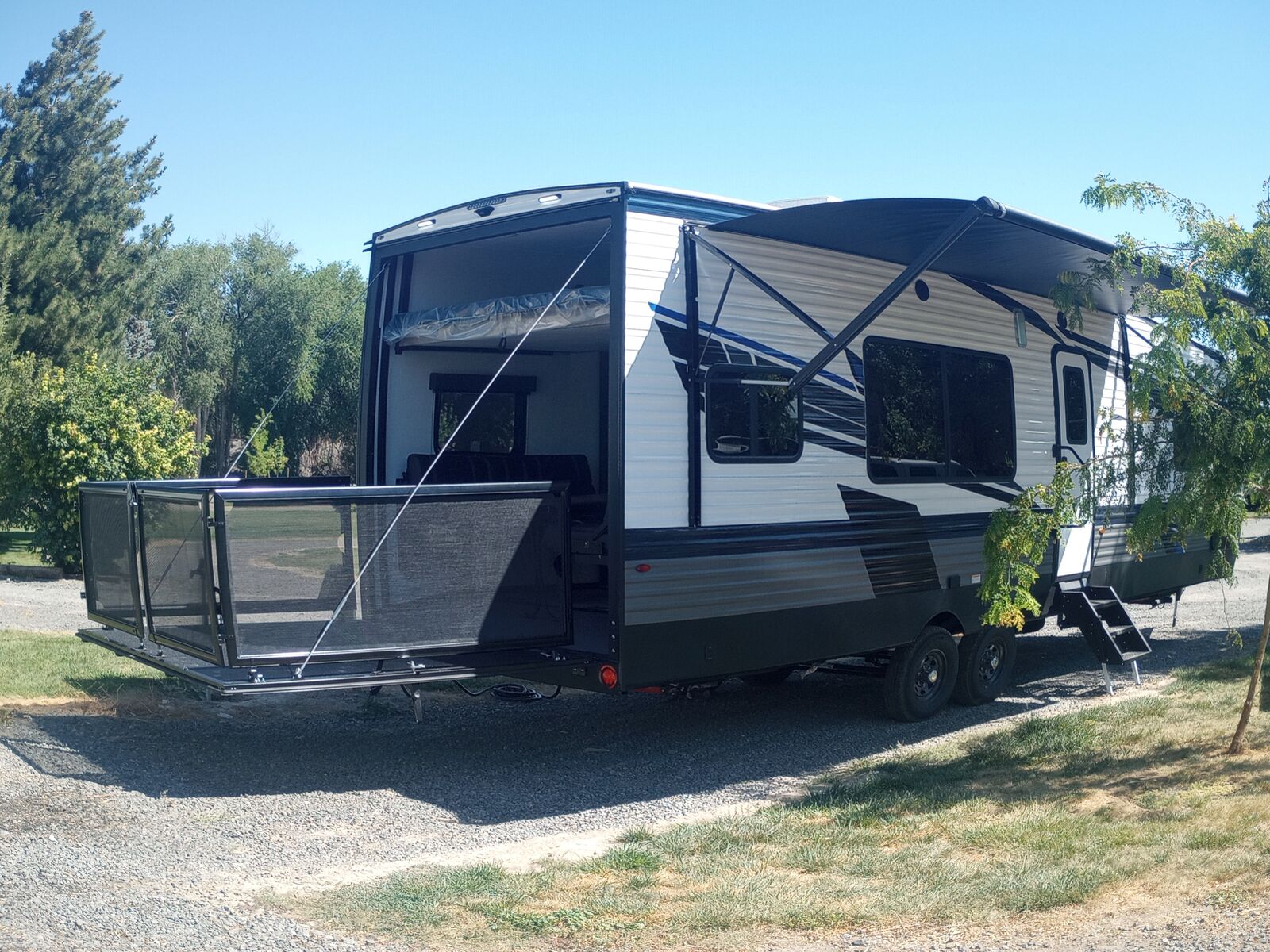 Adventure-ready and family-friendly, this 33′ toy hauler has space for your gear and your crew.