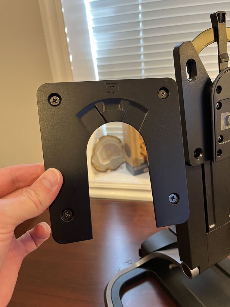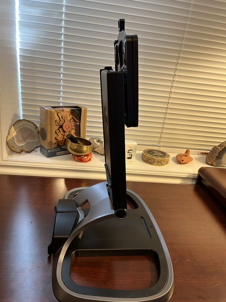 This is an HP monitor stand that can hold large monitors. It has the back plate with it and is ready to go. It held a large 40 inch TV so it is sturdy, but I think it’s meant to hold monitors around 24 inches. Call or text at 801–3 19–5697 with any questions.