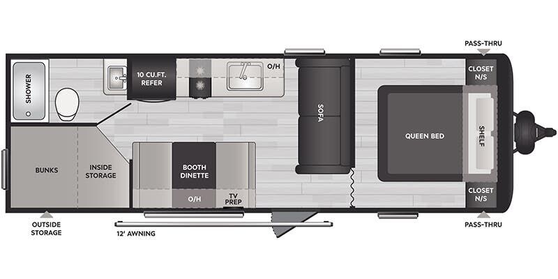 Family fun made easy! Sleeps 10, lightweight (4,984 lbs), and super open floorplan. Dual axles = easy towing.