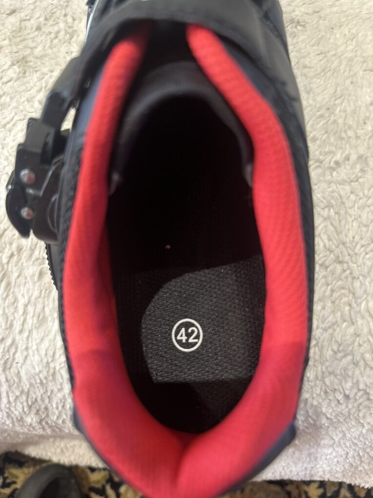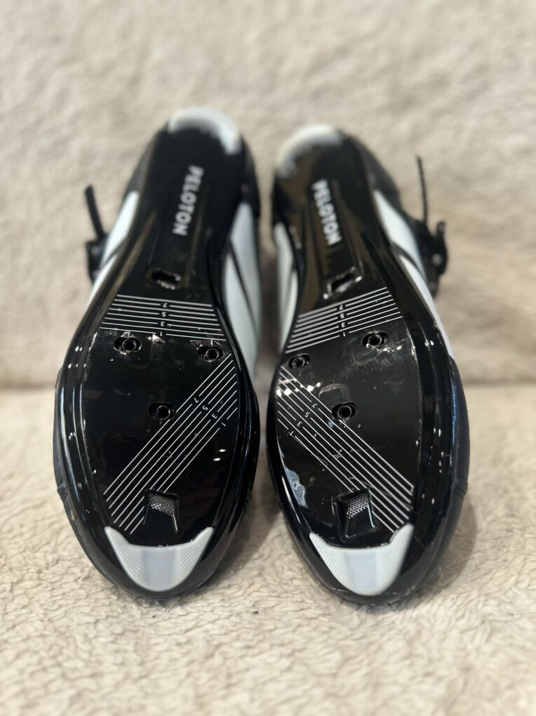 Peloton men’s size 9 or EU 42 black cycling shoes. Is do not include clips. They have vents in the bottom. Here in excellent condition, see photos for detail details. I take cash or Venmo, but cash is preferred. Text is best. 801-201-4446. Check out my other ads for additional sizes in styles.