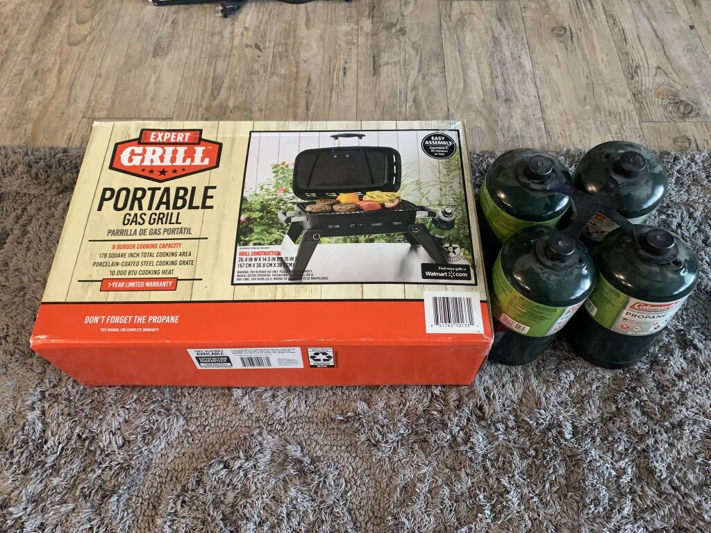 ApplePayPortable gas grill and 4 gas canisters. Brand new inbox never has been used. Great for the hunting season, camping, and backyard family get-togethers. Easy clean up with little to no mess.