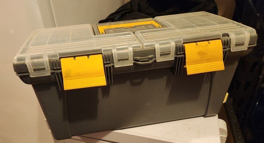 Used but still great shape. Storage on lid has crack but all still locks up fine.