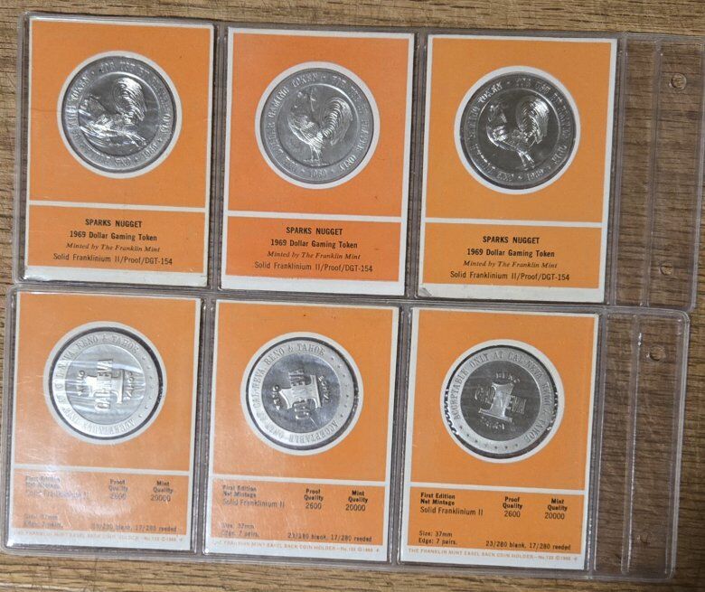 4 sheets of 3 coins each Casino tokens from 1969.