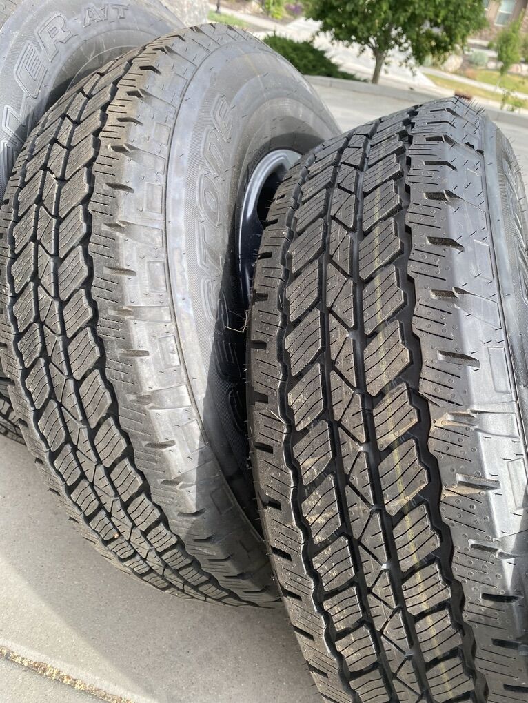 Venmo5 nearly new tires and wheels, only 400 miles, spare has 0 miles Tires are Bridgestone Dueler 255/75R17 Wheels are 17 inch 6x139.7 / 6x5.5 Take offs from 2023 Bronco, will fit other vehicles with same lug pattern.