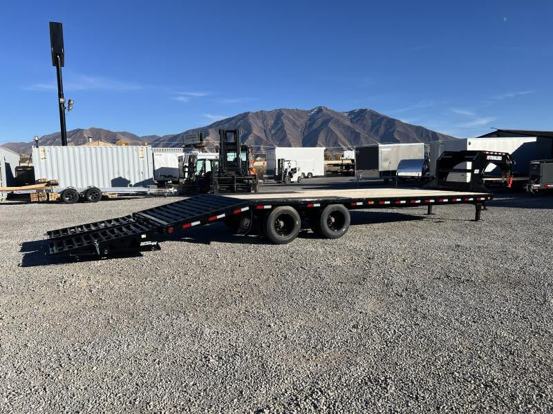 Stock Number: PJ6212 Trailer Includes Following Options: 5' Dovetail w/ Flip Over Monster Ramps Dual Front Hydraulic Jacks 14 Ply LR-G Tire Upgrade Standard Features: 25,900 lbs. GVWR 12,000 lb. x (2) G.A.W.R. 3/8" Grade 70 Safety Chain w/Clevis hook (2 each) Spring Loaded Drop Leg Jacks (10,000 lb.) 2 - 12,000# Axles (Dexter) Electric Axle 5-Leaf Slipper Spring Suspension Dual 16" Black Wheels (8 on 6.5" Bolt Pattern) ST235/80R16 Radial Tires (3,080 lbs.) 3-5/8" x 1-1/2" (ID) Stake Pockets Diamond Plate Low-Pro Fenders 12" x 19 lb. I-beam Tongue 3" Channel Crossmembers on 16" Centers 2" Treated Pine Lumber Deck 102" Wide Deck DOT Approved Flushmount Lifetime LED Lights All-Weather Wiring Harness (7-way RV) Powdercoat 5 year Dexter Axle Warranty WASATCH TRAILER SALES - LARGEST TRAILER SELECTION IN UTAH Springville: (801) 528-1581 | 1180 S 2000 W, Springville UT, 84663