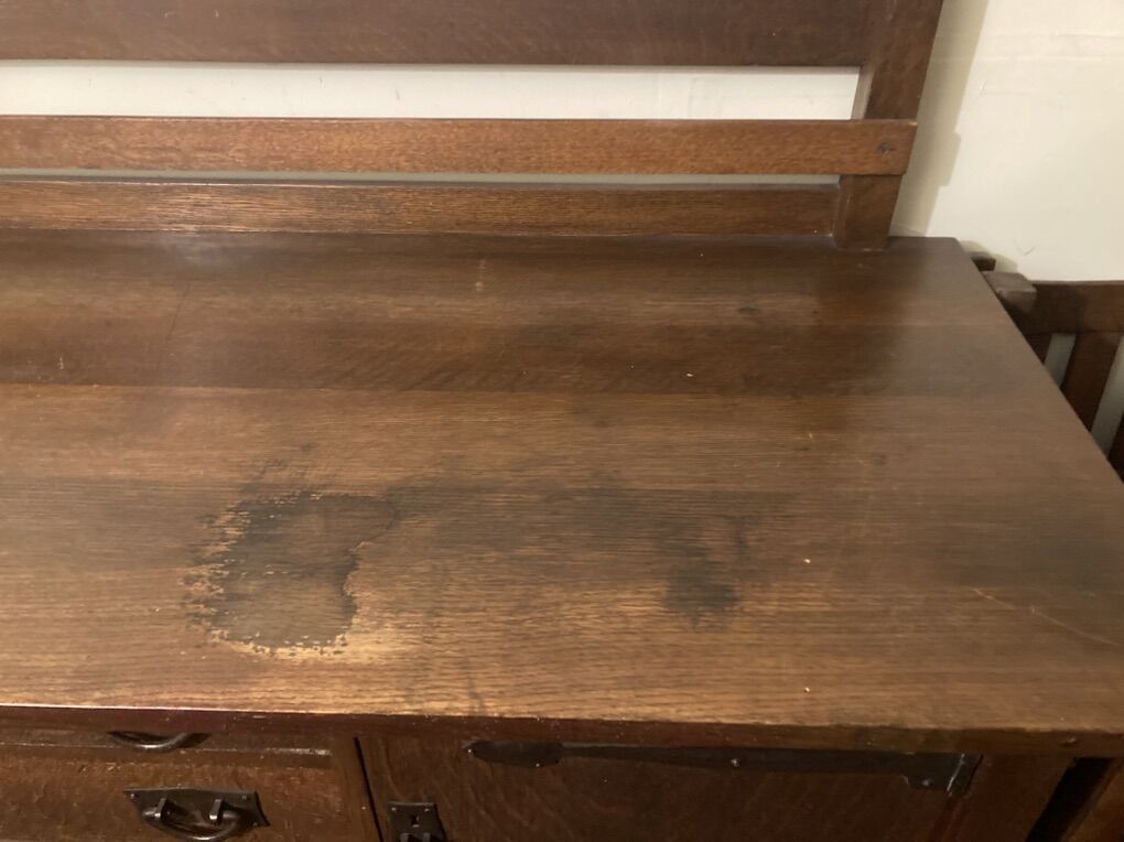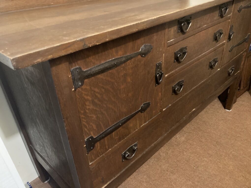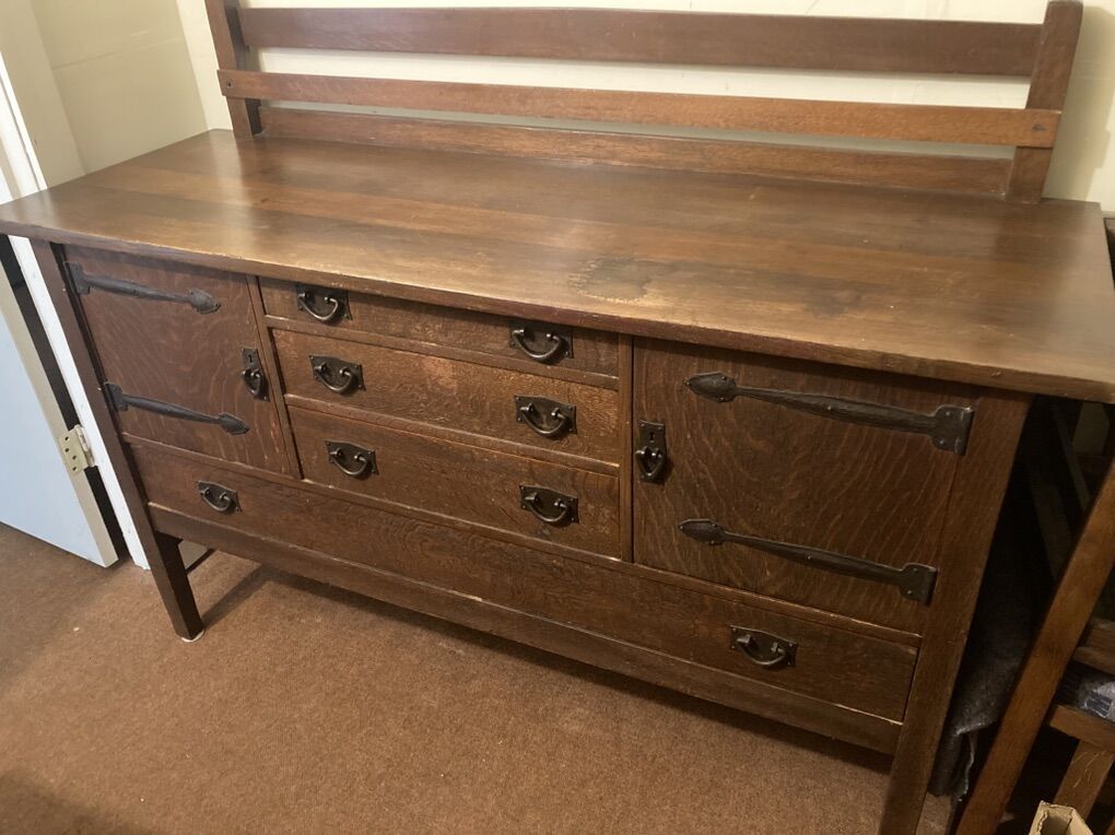 VenmoGustav Stickley Sideboard #814 1/2 with original finish. Measures 66”w x25”d x 49” h (to top of plate rack.)