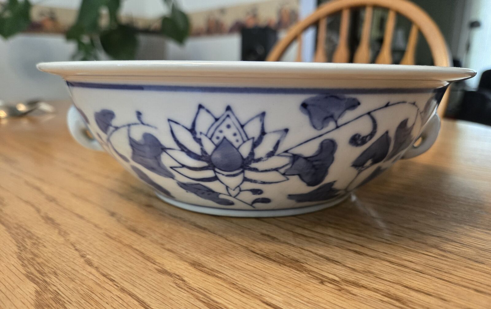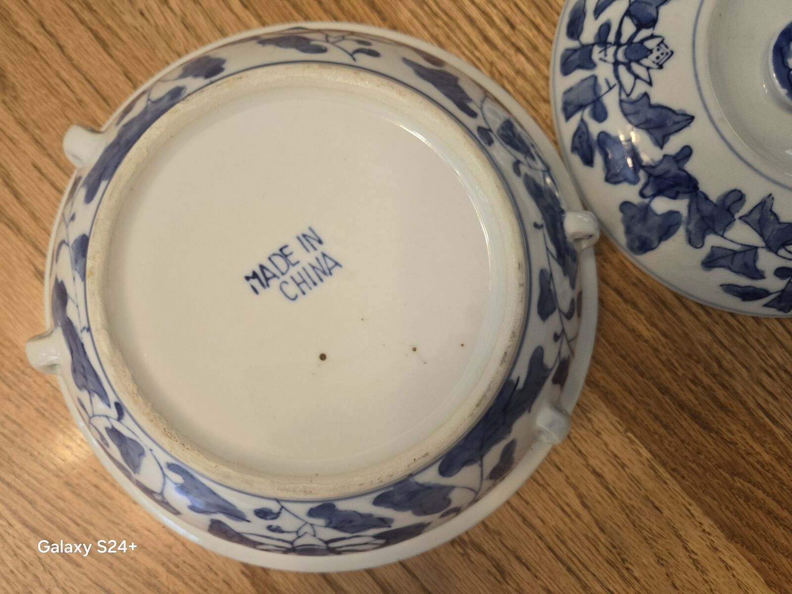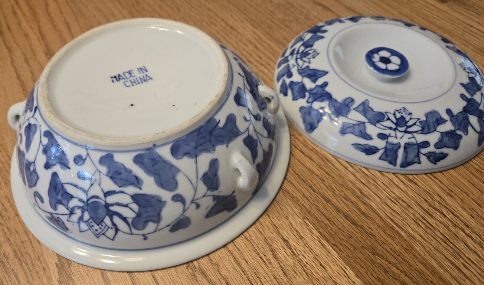Design: It features a distinctive blue and white decorative pattern, which is characteristic of traditional Chinese porcelain, often referred to as blue and white ceramics.
