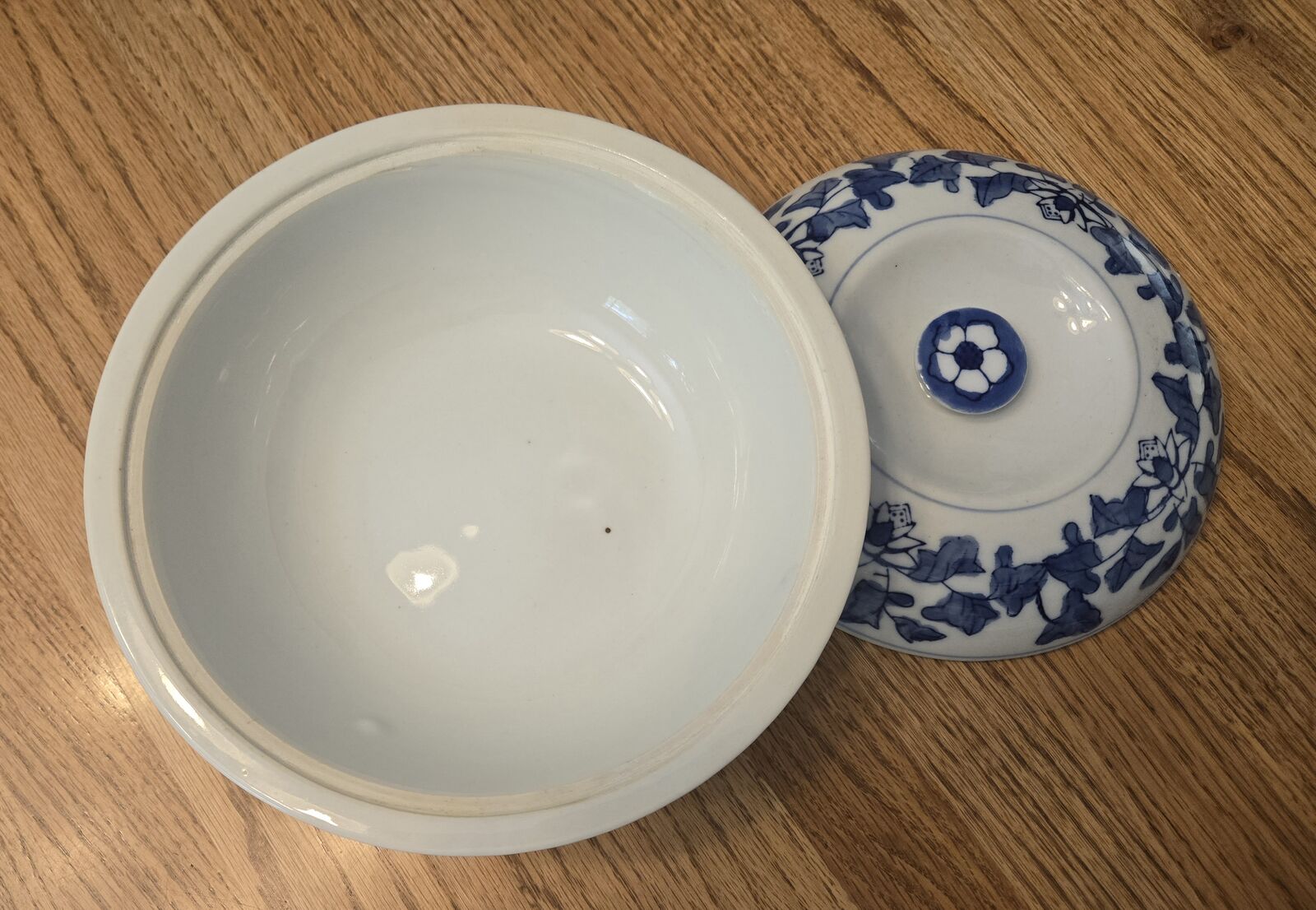 Vintage Blue & White Chinese Porcelain Lidded Serving Tureen Dish Bowl Gently Used.No Signs Of Chips Or Cracks. Measures 8.5 Inches Round & 4 Inches Tall With The Lid On.