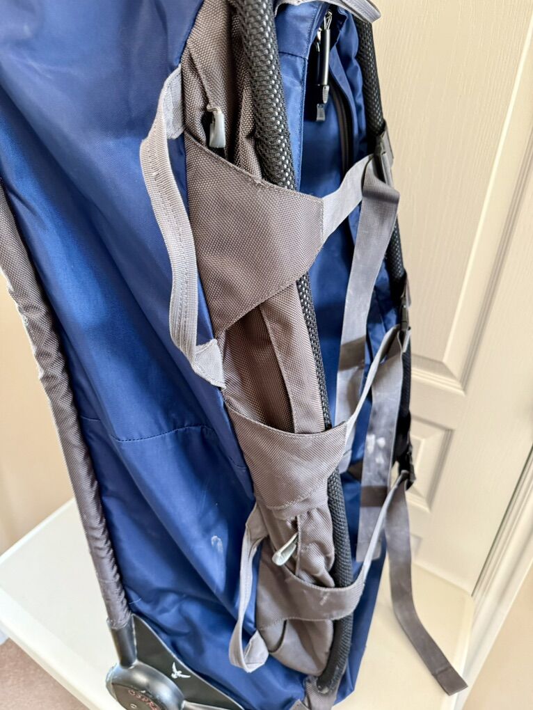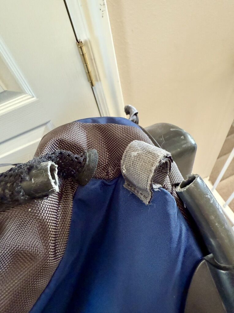 Good condition. There is some damage to the lower outer plastic tube. See pictures. Still works great! Can be fixed if you’re DYI. Tons of storage space. All zippers work great. No rips and tears in the bag and no smell. Originally purchased for $400+ new. $150.