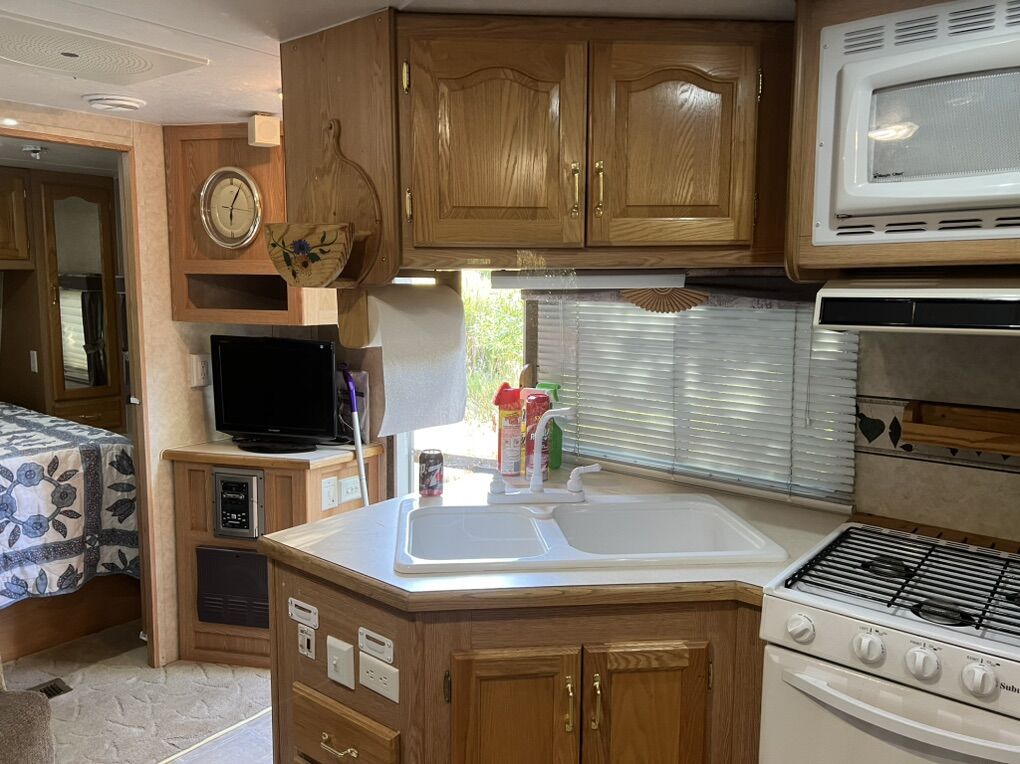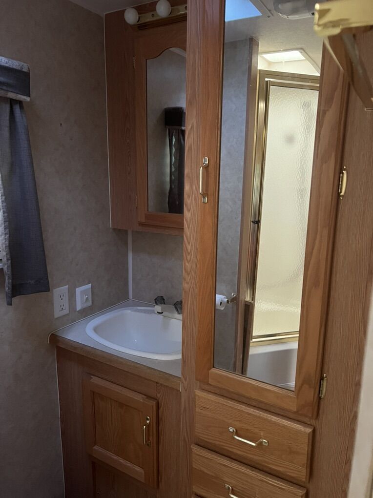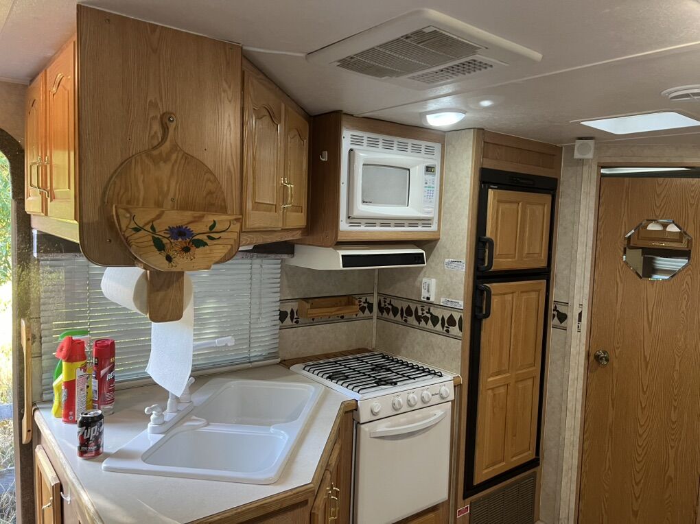 Nice camp trailer with tip out. Sleeps six. Has a queen bed in the front. Fridge and freezer works great. Stove top and oven work great . And so does the air conditioner and furnace.. has an electric jack in the front and tires are in great shape. Never has leaked. roof is in great shape., hot water heater works great as well. $7000 or reasonably offer. If you have any questions please feel free to call or text (435) 503-0929