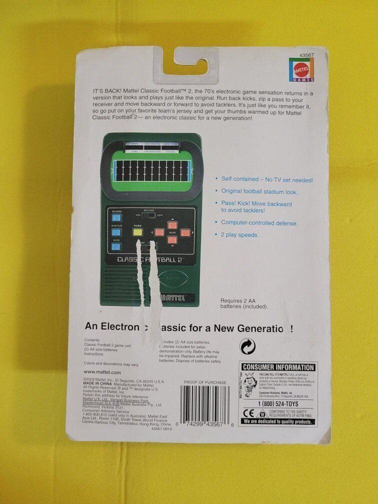 Vintage Mattel Classic Football 2 Handheld Electronic Video Game Retro 2002 New. inf 702 3558824