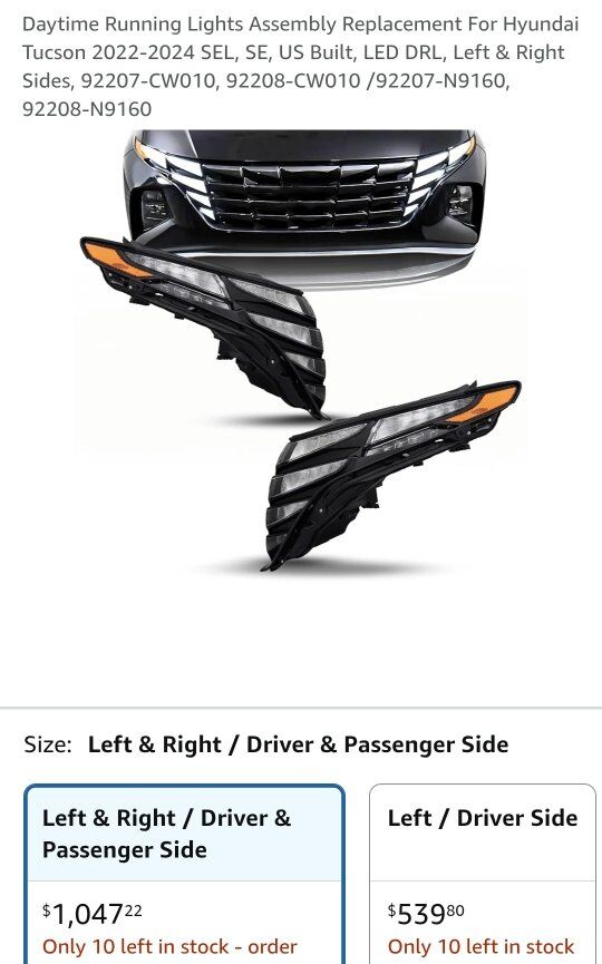 Compatibility] Daytime Running Light DRL Set Compatible With 2022 2023 2024 Tucson / SEL, SE Left & Right / Driver & Passenger Side, OEM: 92207-CW010, 92208-CW010 / OEM: 92207-N9160, 92208-N9160 [Safety] DOT/SAE Compliant Daytime Running Light Assembly. Meet or exceed FMVSS 108 standards for photometry and safety compliance.
