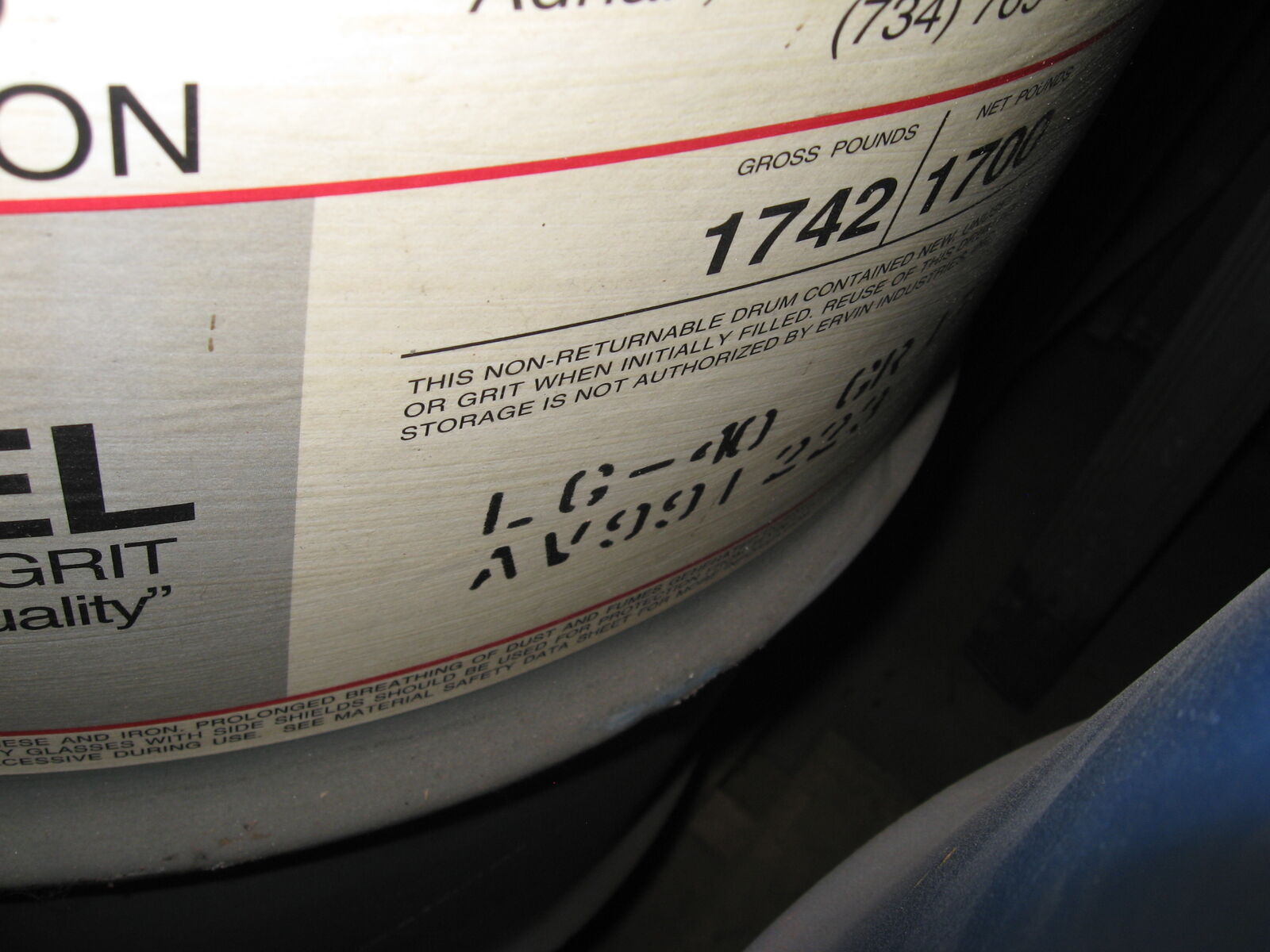 50 pounds of steel blasting grit , was repackaged into 50 pound bags using new sand bags.