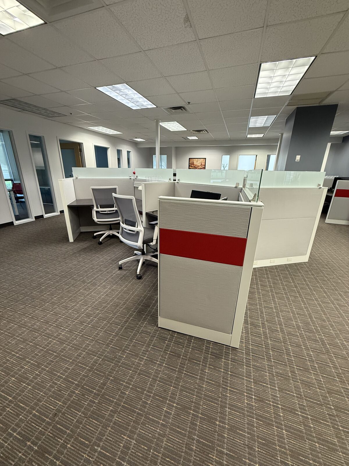 CashAppOffice cubicles that include the paneled walls, desk top and rolling file unit.