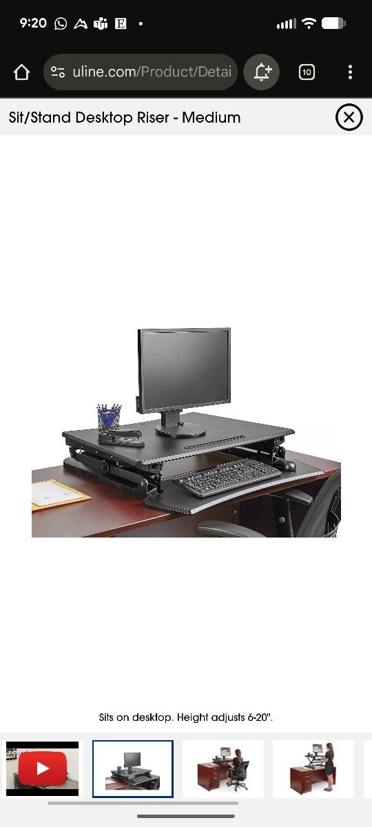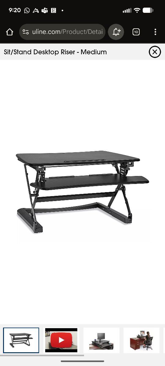 VenmoSells for $350 new, this is only $65. No dings or scratches. It's in great condition! Transitions easily from sitting to standing with side lever and gas lift assistance. Sits on desktop. Height adjusts 6-20". Desk riser lifts straight up and down. 5/8" thick scratch-resistant laminate. Easily fits 2 montiors
