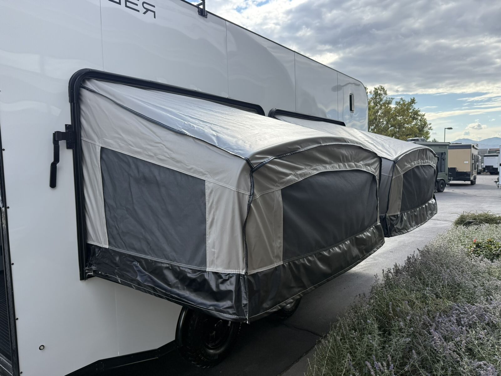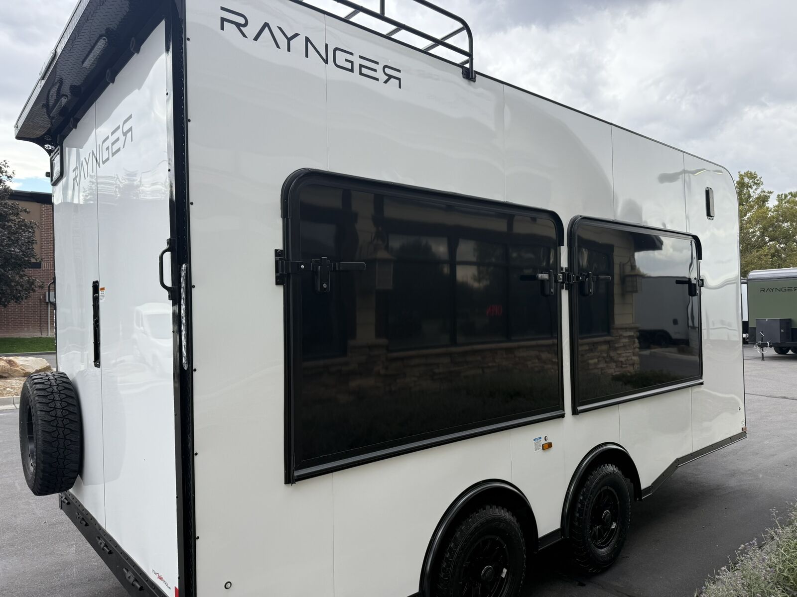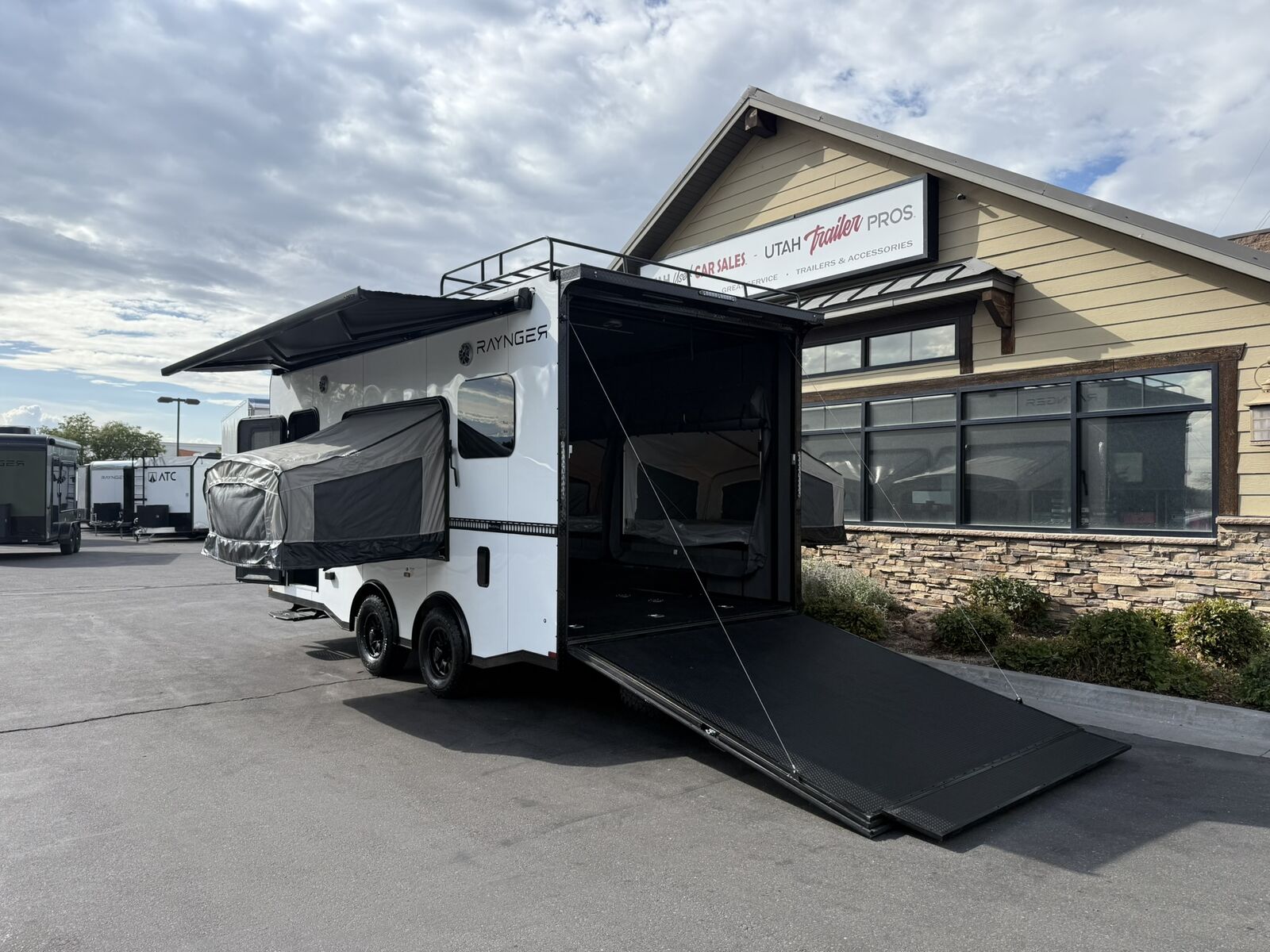 LIMITED TIME $339 A MONTH WITH ZERO DOWN WITH OUR SPECIAL LOCAL CREDIT UNION PARTNER!!! NO PRE-PAYMENT PENALTIES!!! NEW MODEL!!! WILL FIT ANY STOCK SIDE BY SIDE UTV!!! RAYNGER PREMIUM OFF ROAD TOY HAULER CAMPER!!! 18 INCH GROUND CLEARANCE!!! OFF ROAD TIRES!!! FULLY INSULATED!!! HEATING AND A/C!!! WET SOUND STEREO!!! THREE FOLD OUT/POP OUT TENTS WITH PREMIUM MATTRESS!!! CARGO BASKET!!! LED LIT AWNING!!! 87 Inch Rear Entry Height/90 INCH INTERIOR HEIGHT!!! 95 Inch Rear Entry Width!!! Aluminum Ventilated Locking Generator Box!!! UPGRADED TORSION AXLES!!! And Much MUCH MORE!!! Check out our Specs!!! 16 Foot and 18 Foot Models will fit ANY stock 4 Seater Side by Side • 6” I Beam Frame• Flat Top Design• Flat Front Design• Wall Posts 16” on Center• Cross Members 16” on Center• Roof Bows 16” on Center• Rust Inhibiting Z-Tech Protection on Chassis• Ameraguard on Tongue• Ameraguard on Rear Bumper• Ameraguard Around All Door Openings and Stepwell• Ameraguard Around Edges of Ramp Door• 3500 LB Spring Axles• 2-5/16” Coupler• One-Piece Aluminum Roof• ST235/75R15 Aluminum Wheels with Chrome Center Caps• 2000# Ramp Door with Eberhard Latch• 30” Tempered Glass RV Door with Screen Door• .030 Exterior Metal with Screwless Sides• 24” Black Stoneguard• 3” Black Bottom Trim• Sand Pad• Black Door Hold• 2.7mm Charcoal Textured Vinyl Ceiling • 9mm Charcoal Textured Vinyl Walls• 3/4” Engineered Wood Floor with Rubber Coin Overlay• (6) 1200 LB Floor D rings Installed with Backer Plates• LED Clearance Lights and Tail Lights• LED Back-up Lights• No Show Wheel Box• Spoiler with Toggle Switch• RV Step• 7’ Interior• (2) 17” Chrome Base Lights with Switch• (1) Black 17” Spot Light with Switch• (1) 30 Amp Panel with Marine Plug• A/C Unit with Heat Strip• (3) Interior Recepts• (1) Exterior Recept• 12V Battery and Charge Line• Prep for Backup Camera• Wet Sounds System• (3) Blue Interior Cabinet Lights• (1) 6’ Section of Flex Lights• Black ATP Rear Header and Hoop• Black ATP Fenders• Insulated Walls & Ceiling• Base Cabinets• Overhead Cabinets with Netting Over Compartments• Pop Out Tent• Black ATP Storage/Generator Box Mounted On Tongue