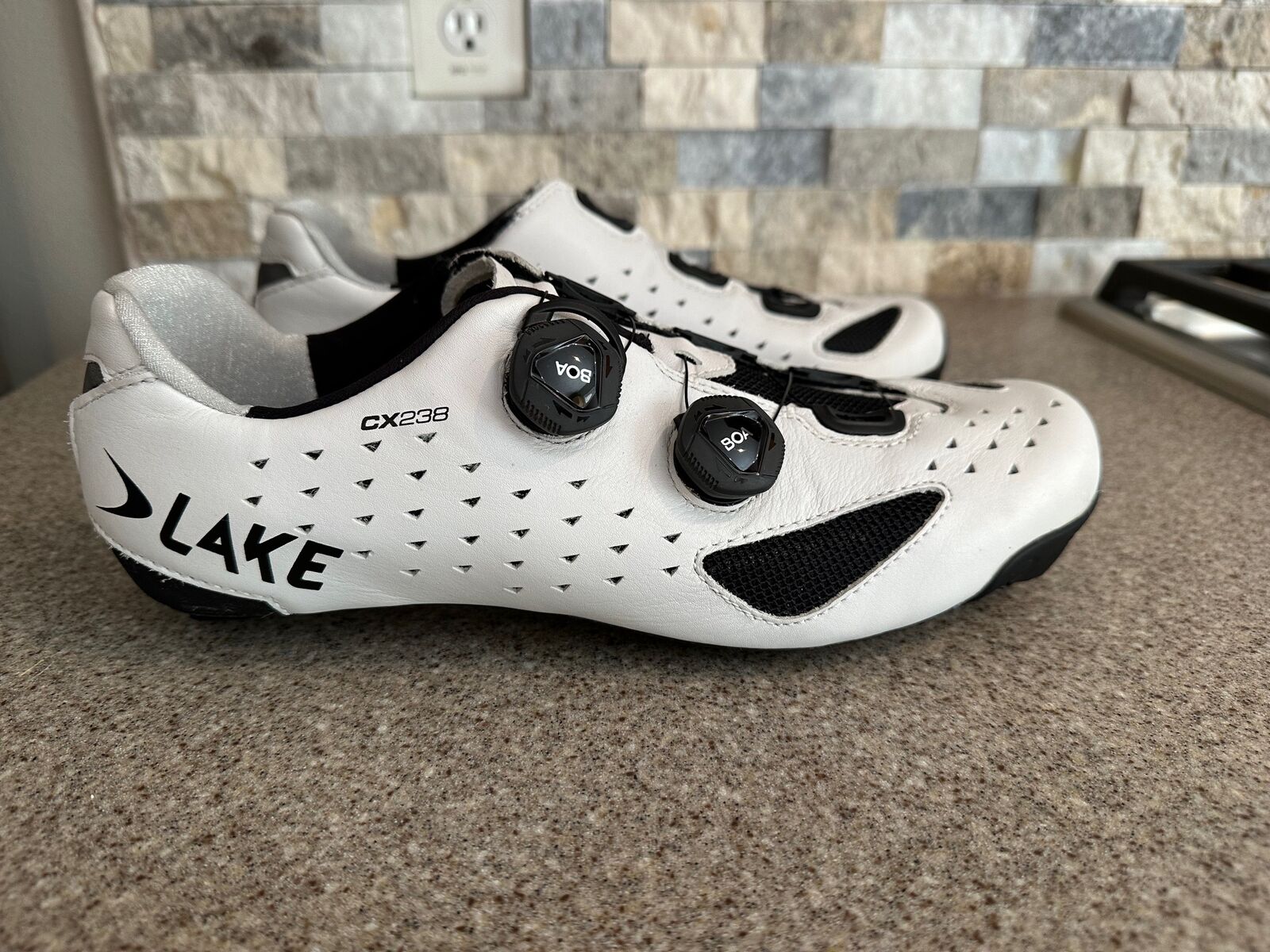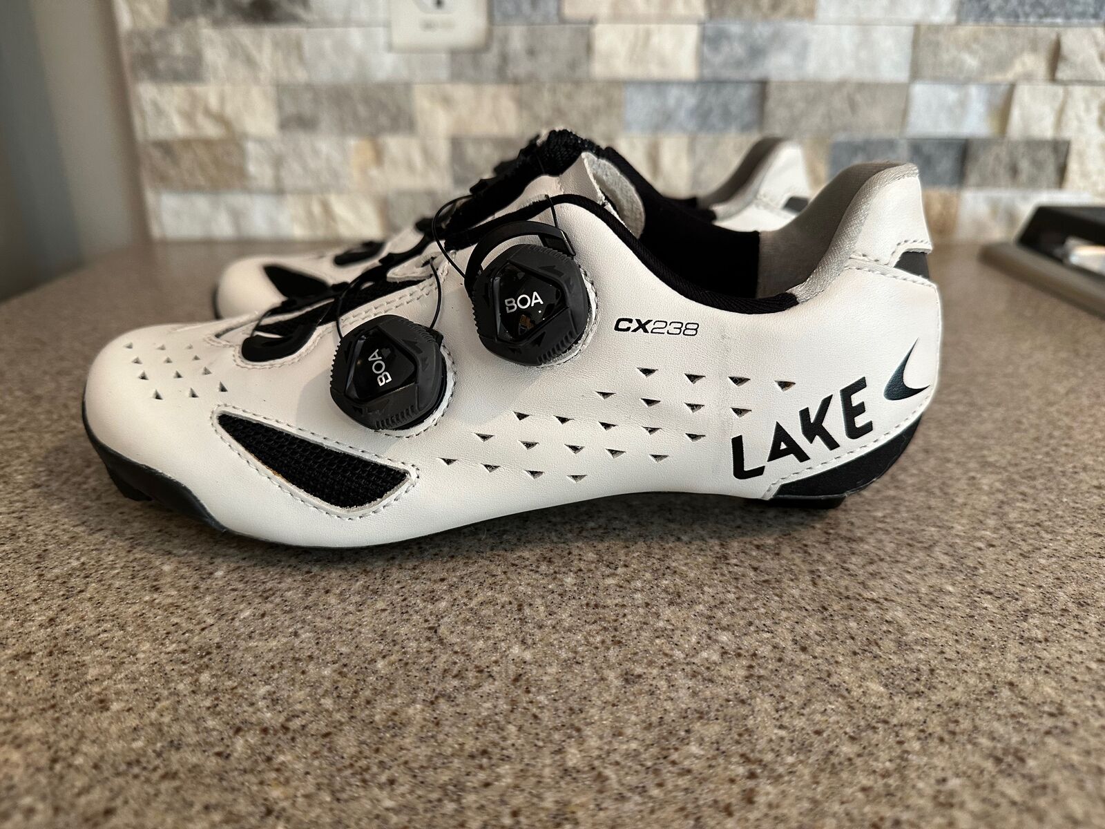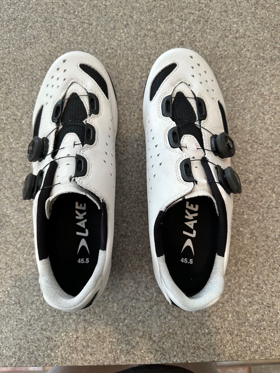 I have three sets of Lake CX238 carbon soled leather road cycling shoes for sale: