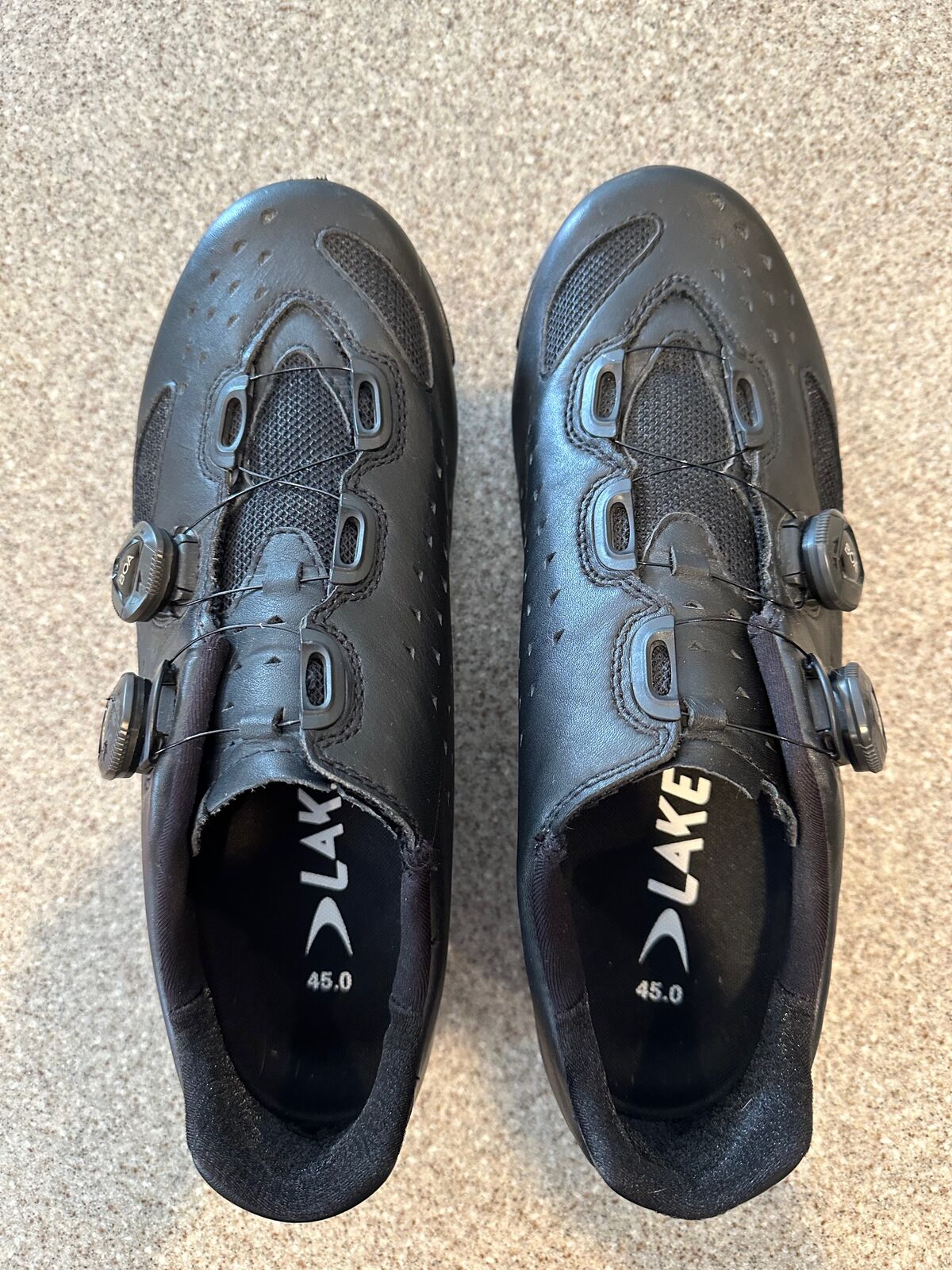 Both white sets are low use, the black set a bit more use. The shoes have never gotten wet and Boa closures all work perfectly. The size 45 is closer to a size 11.5 and the size 45.5 is closer to size 12, but there isn't too much difference (I was able to fit perfectly in both but prefer the 45.5).