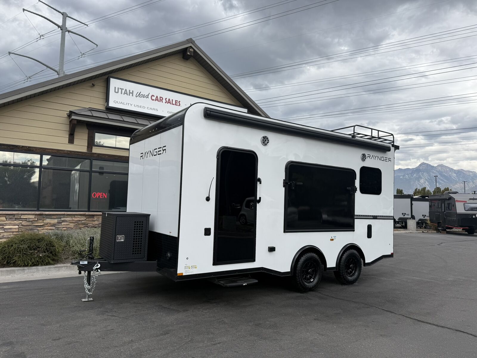 LIMITED TIME $339 A MONTH WITH ZERO DOWN WITH OUR SPECIAL LOCAL CREDIT UNION PARTNER!!! NO PRE-PAYMENT PENALTIES!!! NEW MODEL!!! WILL FIT ANY STOCK SIDE BY SIDE UTV!!! RAYNGER PREMIUM OFF ROAD TOY HAULER CAMPER!!! 18 INCH GROUND CLEARANCE!!! OFF ROAD TIRES!!! FULLY INSULATED!!! HEATING AND A/C!!! WET SOUND STEREO!!! THREE FOLD OUT/POP OUT TENTS WITH PREMIUM MATTRESS!!! CARGO BASKET!!! LED LIT AWNING!!! 87 Inch Rear Entry Height/90 INCH INTERIOR HEIGHT!!! 95 Inch Rear Entry Width!!! Aluminum Ventilated Locking Generator Box!!! UPGRADED TORSION AXLES!!! And Much MUCH MORE!!! Check out our Specs!!! 16 Foot and 18 Foot Models will fit ANY stock 4 Seater Side by Side • 6” I Beam Frame• Flat Top Design• Flat Front Design• Wall Posts 16” on Center• Cross Members 16” on Center• Roof Bows 16” on Center• Rust Inhibiting Z-Tech Protection on Chassis• Ameraguard on Tongue• Ameraguard on Rear Bumper• Ameraguard Around All Door Openings and Stepwell• Ameraguard Around Edges of Ramp Door• 3500 LB Spring Axles• 2-5/16” Coupler• One-Piece Aluminum Roof• ST235/75R15 Aluminum Wheels with Chrome Center Caps• 2000# Ramp Door with Eberhard Latch• 30” Tempered Glass RV Door with Screen Door• .030 Exterior Metal with Screwless Sides• 24” Black Stoneguard• 3” Black Bottom Trim• Sand Pad• Black Door Hold• 2.7mm Charcoal Textured Vinyl Ceiling • 9mm Charcoal Textured Vinyl Walls• 3/4” Engineered Wood Floor with Rubber Coin Overlay• (6) 1200 LB Floor D rings Installed with Backer Plates• LED Clearance Lights and Tail Lights• LED Back-up Lights• No Show Wheel Box• Spoiler with Toggle Switch• RV Step• 7’ Interior• (2) 17” Chrome Base Lights with Switch• (1) Black 17” Spot Light with Switch• (1) 30 Amp Panel with Marine Plug• A/C Unit with Heat Strip• (3) Interior Recepts• (1) Exterior Recept• 12V Battery and Charge Line• Prep for Backup Camera• Wet Sounds System• (3) Blue Interior Cabinet Lights• (1) 6’ Section of Flex Lights• Black ATP Rear Header and Hoop• Black ATP Fenders• Insulated Walls & Ceiling• Base Cabinets• Overhead Cabinets with Netting Over Compartments• Pop Out Tent• Black ATP Storage/Generator Box Mounted On Tongue