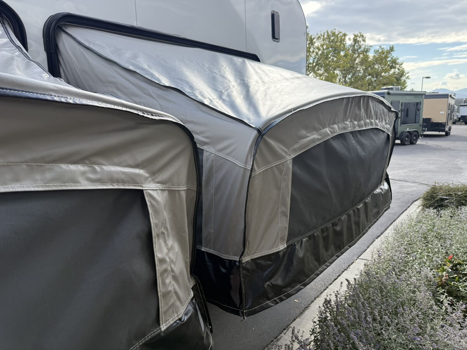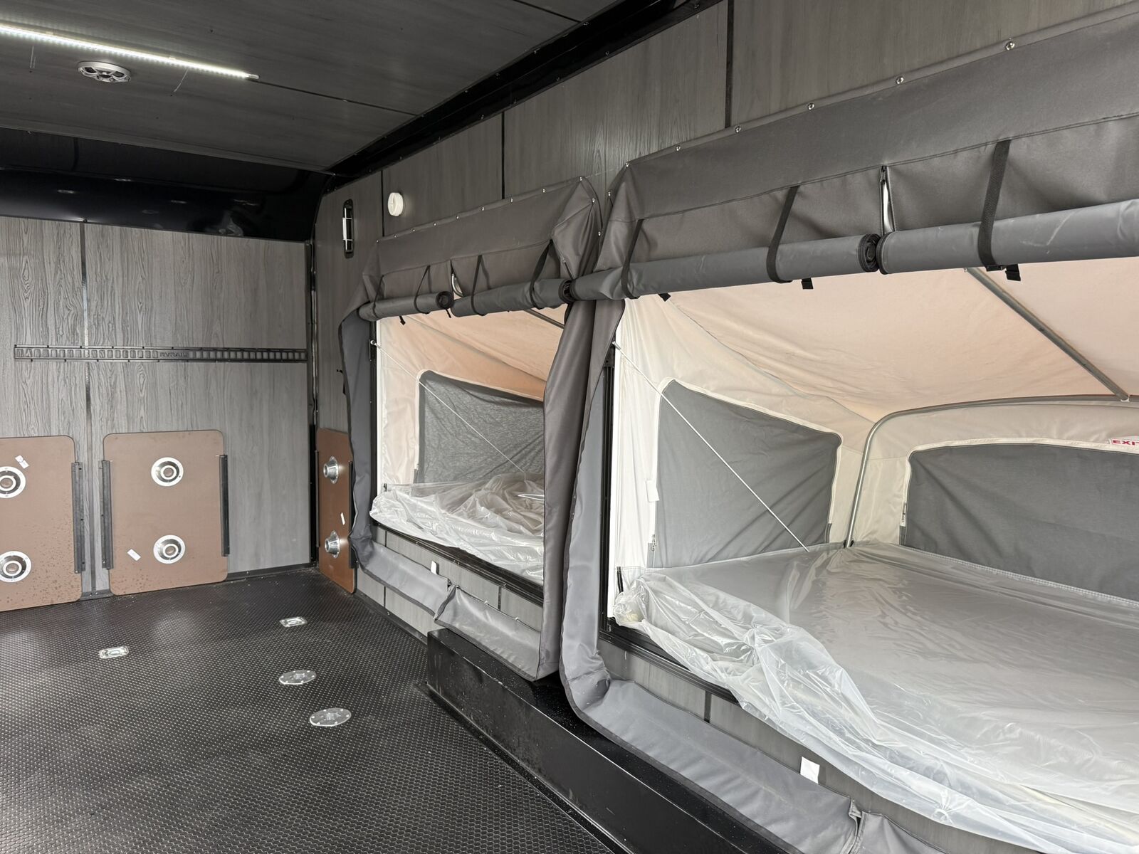 LIMITED TIME $339 A MONTH WITH ZERO DOWN WITH OUR SPECIAL LOCAL CREDIT UNION PARTNER!!! NO PRE-PAYMENT PENALTIES!!! NEW MODEL!!! WILL FIT ANY STOCK SIDE BY SIDE UTV!!! RAYNGER PREMIUM OFF ROAD TOY HAULER CAMPER!!! 18 INCH GROUND CLEARANCE!!! OFF ROAD TIRES!!! FULLY INSULATED!!! HEATING AND A/C!!! WET SOUND STEREO!!! THREE FOLD OUT/POP OUT TENTS WITH PREMIUM MATTRESS!!! CARGO BASKET!!! LED LIT AWNING!!! 87 Inch Rear Entry Height/90 INCH INTERIOR HEIGHT!!! 95 Inch Rear Entry Width!!! Aluminum Ventilated Locking Generator Box!!! UPGRADED TORSION AXLES!!! And Much MUCH MORE!!! Check out our Specs!!! 16 Foot and 18 Foot Models will fit ANY stock 4 Seater Side by Side • 6” I Beam Frame• Flat Top Design• Flat Front Design• Wall Posts 16” on Center• Cross Members 16” on Center• Roof Bows 16” on Center• Rust Inhibiting Z-Tech Protection on Chassis• Ameraguard on Tongue• Ameraguard on Rear Bumper• Ameraguard Around All Door Openings and Stepwell• Ameraguard Around Edges of Ramp Door• 3500 LB Spring Axles• 2-5/16” Coupler• One-Piece Aluminum Roof• ST235/75R15 Aluminum Wheels with Chrome Center Caps• 2000# Ramp Door with Eberhard Latch• 30” Tempered Glass RV Door with Screen Door• .030 Exterior Metal with Screwless Sides• 24” Black Stoneguard• 3” Black Bottom Trim• Sand Pad• Black Door Hold• 2.7mm Charcoal Textured Vinyl Ceiling • 9mm Charcoal Textured Vinyl Walls• 3/4” Engineered Wood Floor with Rubber Coin Overlay• (6) 1200 LB Floor D rings Installed with Backer Plates• LED Clearance Lights and Tail Lights• LED Back-up Lights• No Show Wheel Box• Spoiler with Toggle Switch• RV Step• 7’ Interior• (2) 17” Chrome Base Lights with Switch• (1) Black 17” Spot Light with Switch• (1) 30 Amp Panel with Marine Plug• A/C Unit with Heat Strip• (3) Interior Recepts• (1) Exterior Recept• 12V Battery and Charge Line• Prep for Backup Camera• Wet Sounds System• (3) Blue Interior Cabinet Lights• (1) 6’ Section of Flex Lights• Black ATP Rear Header and Hoop• Black ATP Fenders• Insulated Walls & Ceiling• Base Cabinets• Overhead Cabinets with Netting Over Compartments• Pop Out Tent• Black ATP Storage/Generator Box Mounted On Tongue