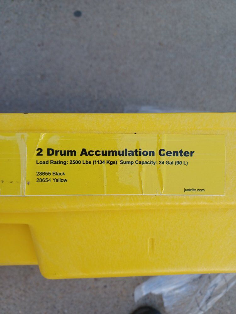 just right two drum accumulation Center load rating 2500 lb some capacity 24 gallon item number 28654 brand new any questions please message me measures 49 in wide 5.5 in in height and 25 in deep