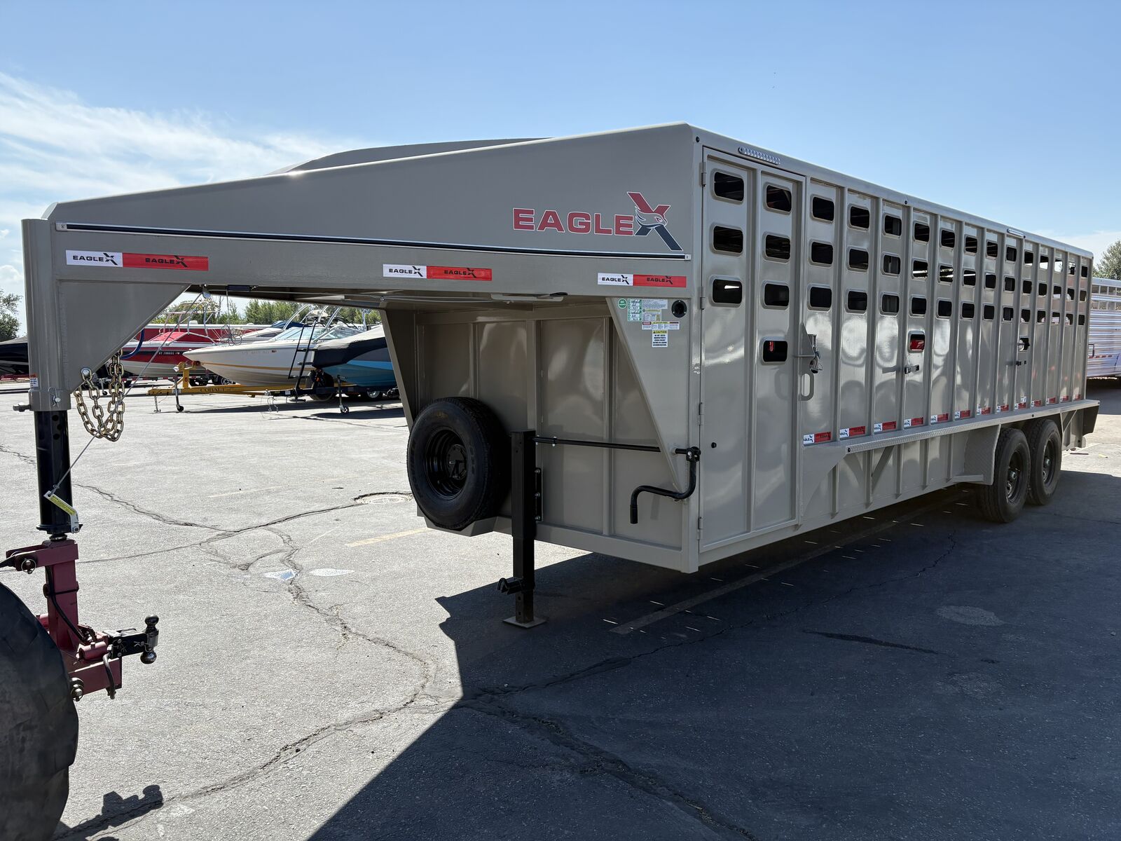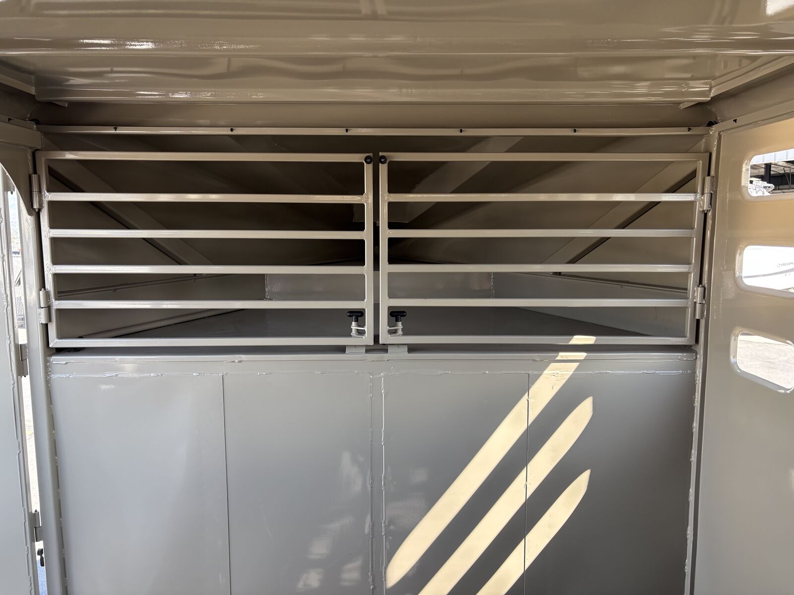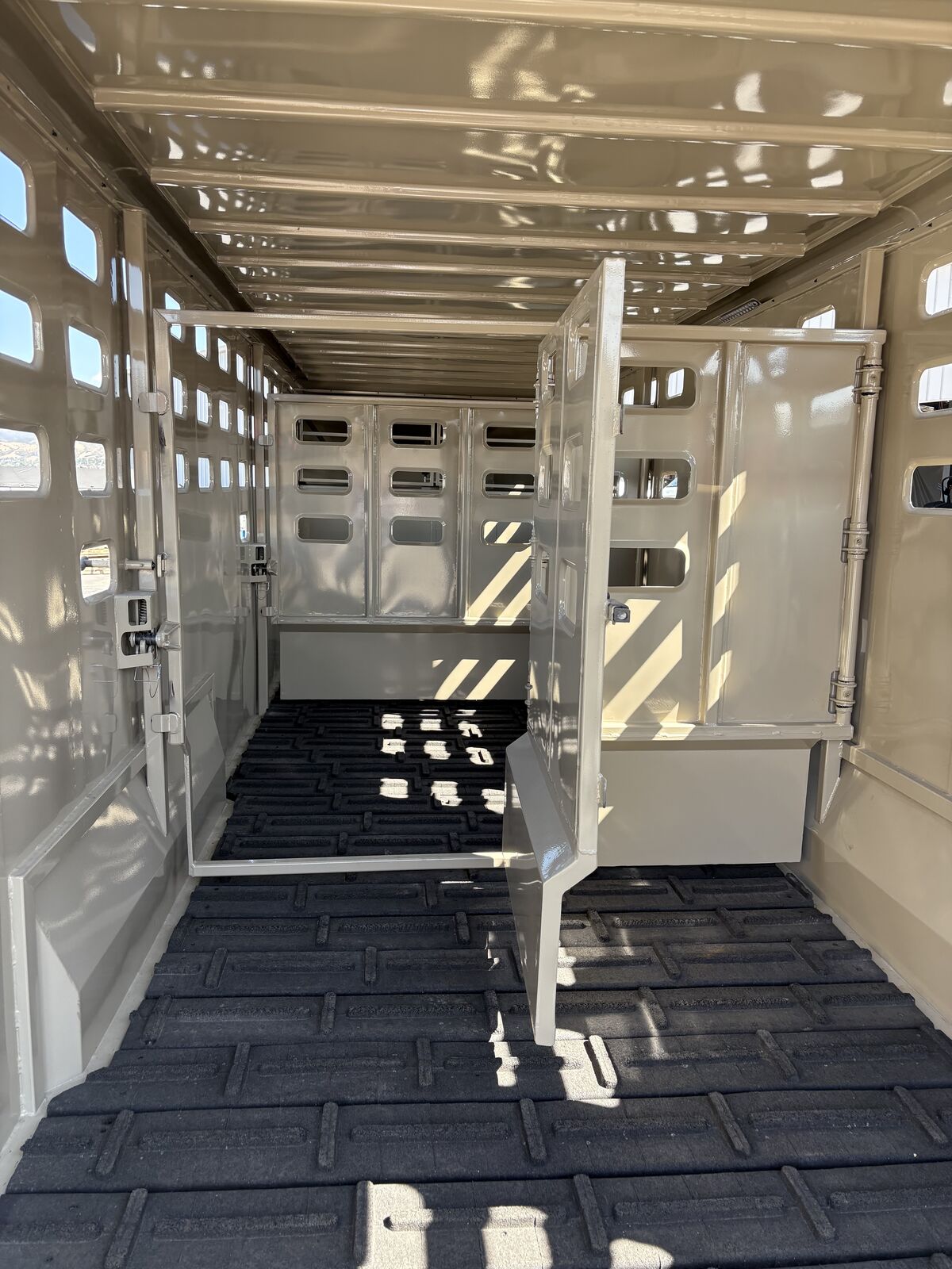 You have to come check these out if you're looking for a RUGGED stock trailer. Brush fenders, 14 ply tires, cleated rubber flooring, sorting gate, rear slider gate, calf gate in nose, LED lighting, punched sides, heavy duty latches. This trailer is a beast!