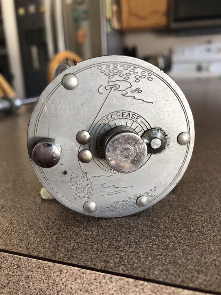 Vintage Bristol Telescoping 9’ steel pole. J C Higgins Reel. Cash only