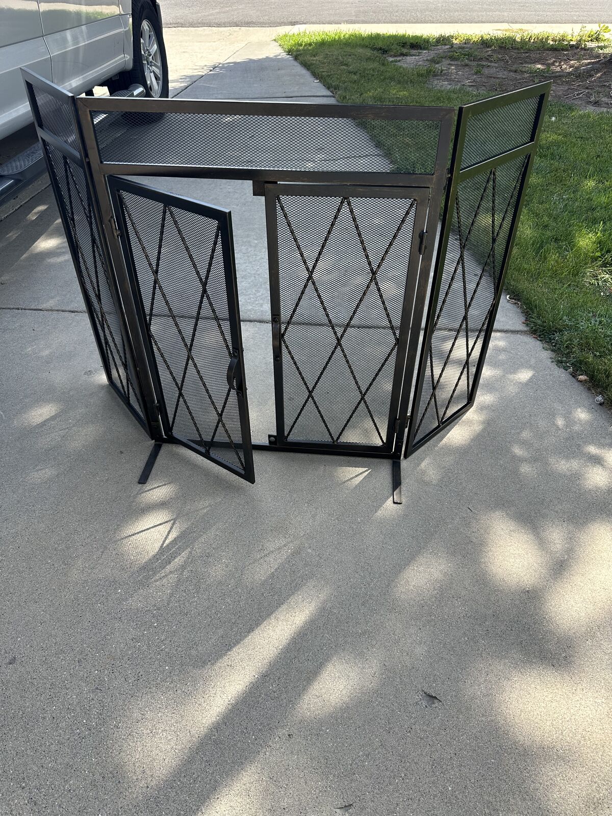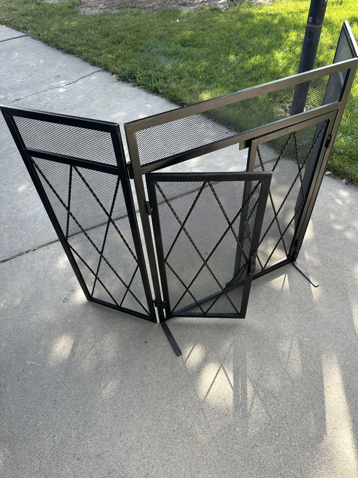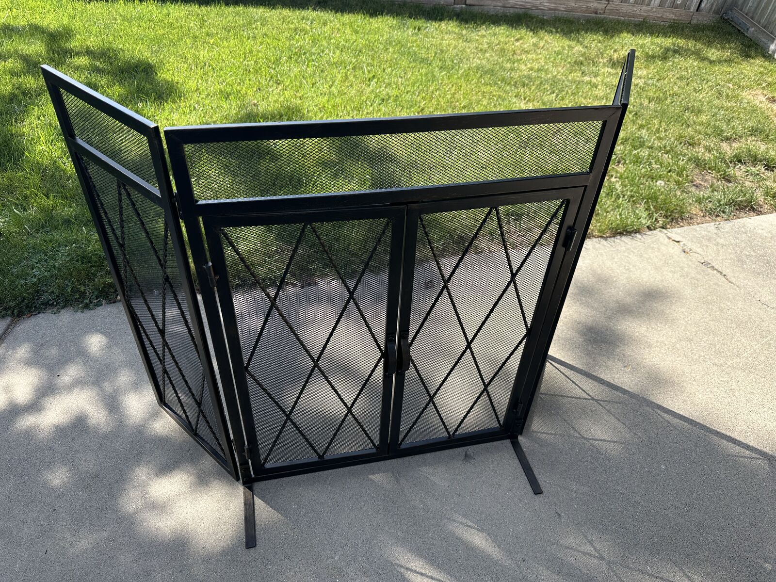 Brand new in the box. 50" black steel Kempston Park 3-panel fireplace screen with doors. Oil rubbed bronze finish. It can adjust to fit just about any fireplace or stove. These screens help keep kids safe around the fireplace and prevent ash and sparks from flying out. Home Depot sells these but they're currently out of stock. Why pay twice as much at HD? I have 7 available for less than 1/2 the price.