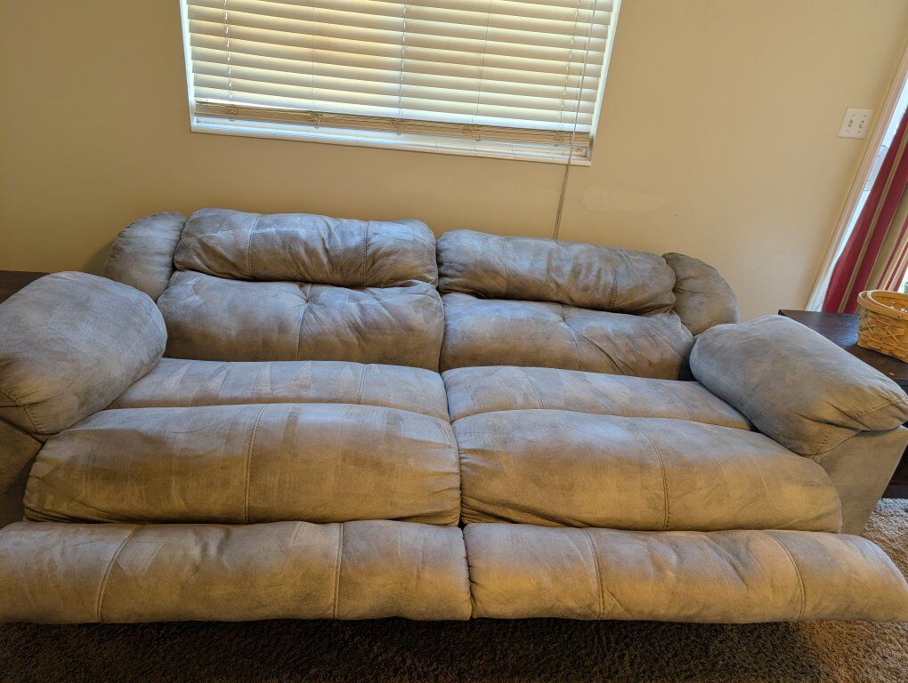 VenmoTwo cushion reclining beige couch. Everything reclines great! From Rcwilley's but, it has been used for a few years. Power cords in the back seem to do great. One cord doesn't clip in quite right but it still works great! You have access to different reclining settings using the buttons on both sides of the couch. USB access on each side. The back can be pulled off for easier transport. It is a bit heavy. At least two people need to lift. We are selling it because we want a sectional. Smoke Free home Just cleaned and ready for new home. Asking $800 OBO