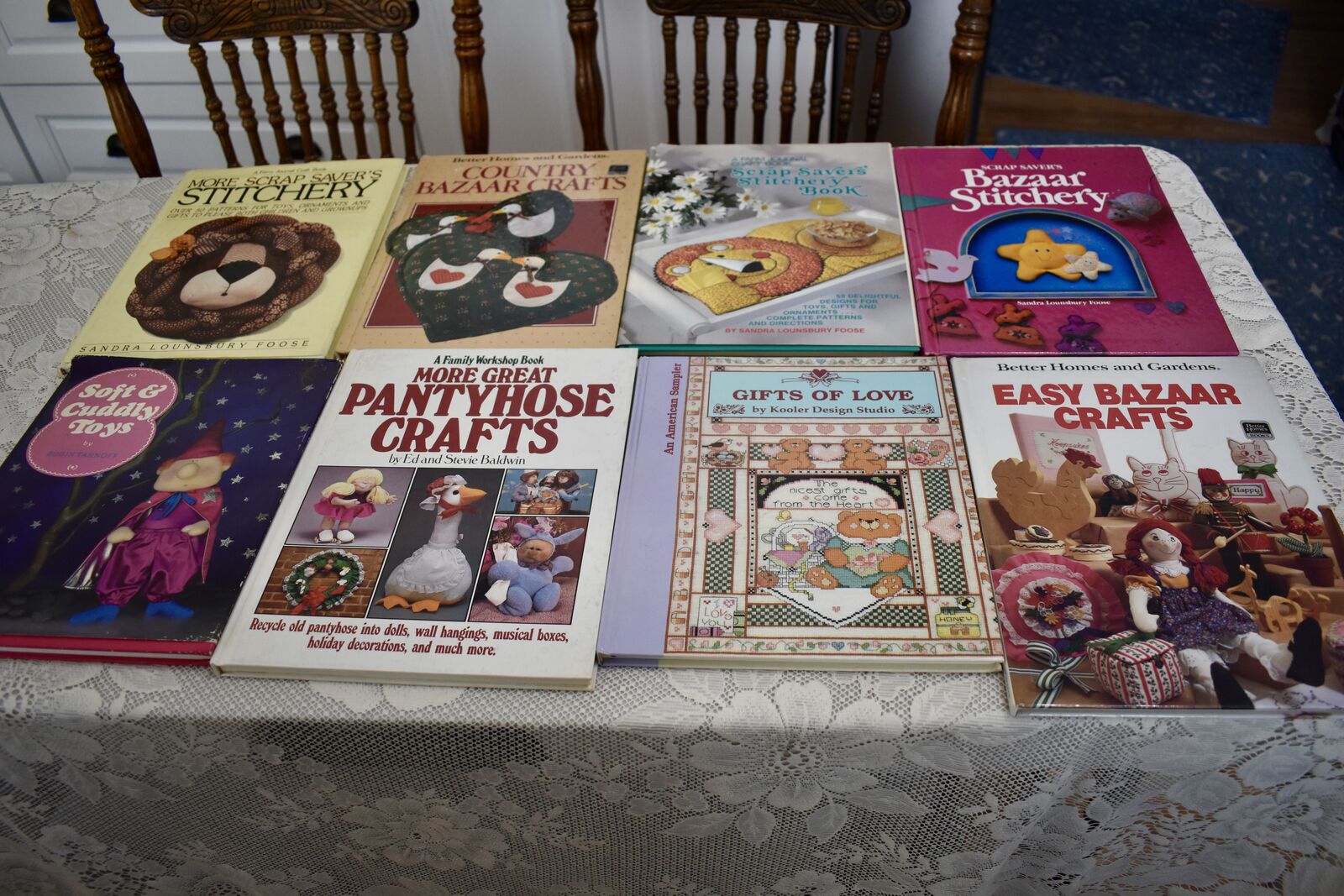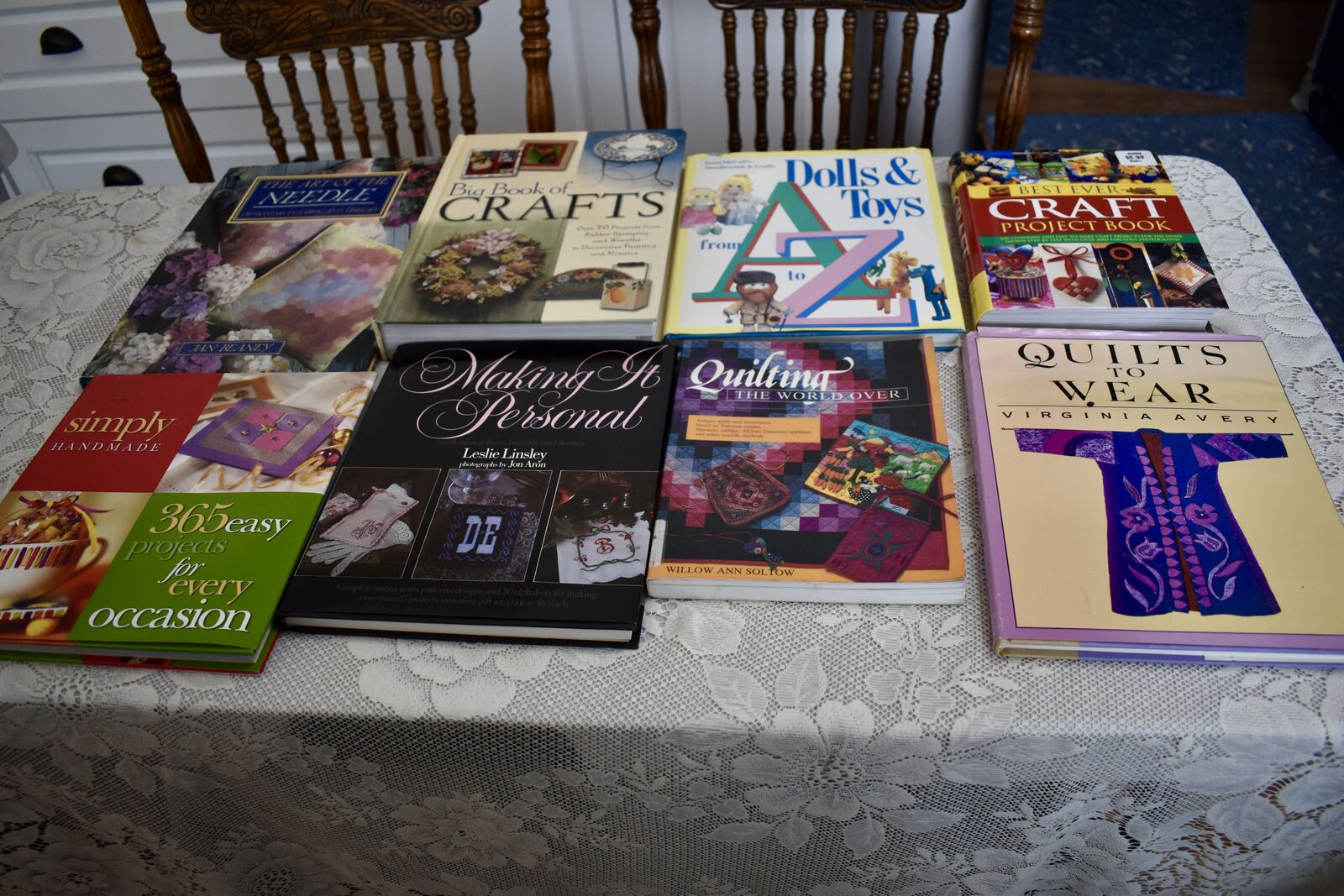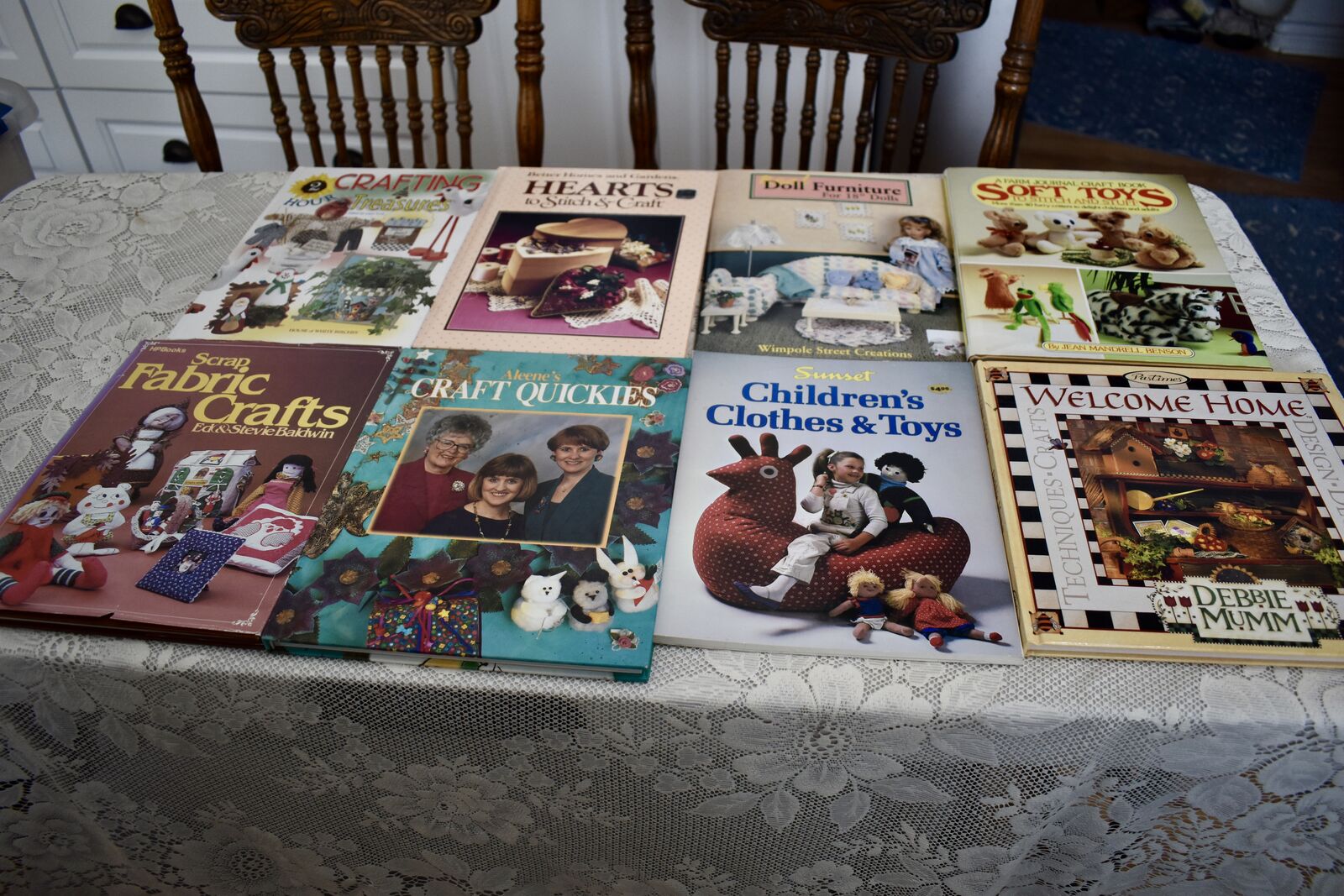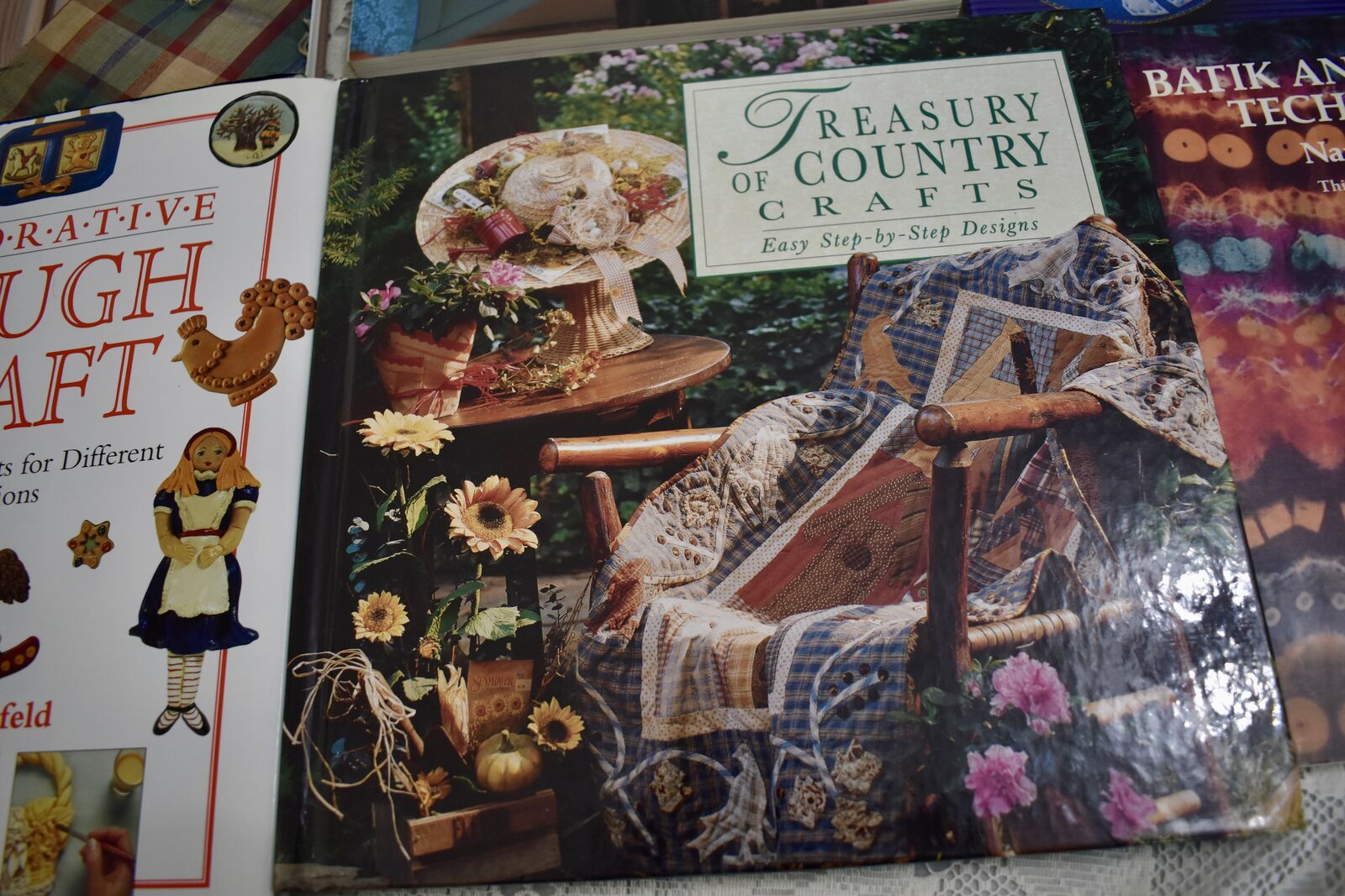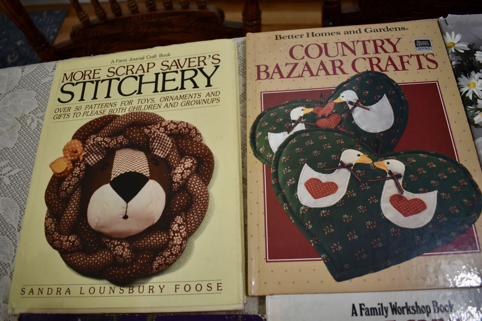 WE HAVE A FEW QUILT BOOKS, A FEW EMBROIDERY BOOKS, BOOKS FOR MAKING THINGS FOR BAZAARS TO SELL, HOUSE DECOR, COUNTRY CRAFTS, ALL KINDS OF NEEDLEWORK CRAFTS, DOLL MAKING, TOY MAKING, WOODWORKING CRAFTS TO CUT AND TO PAINT, MAKING CLOTHING FOR BABIES, SEWING TIPS AND TRICKS AND MORE. Some of them are really big Books that are filled with so many fun things to make.