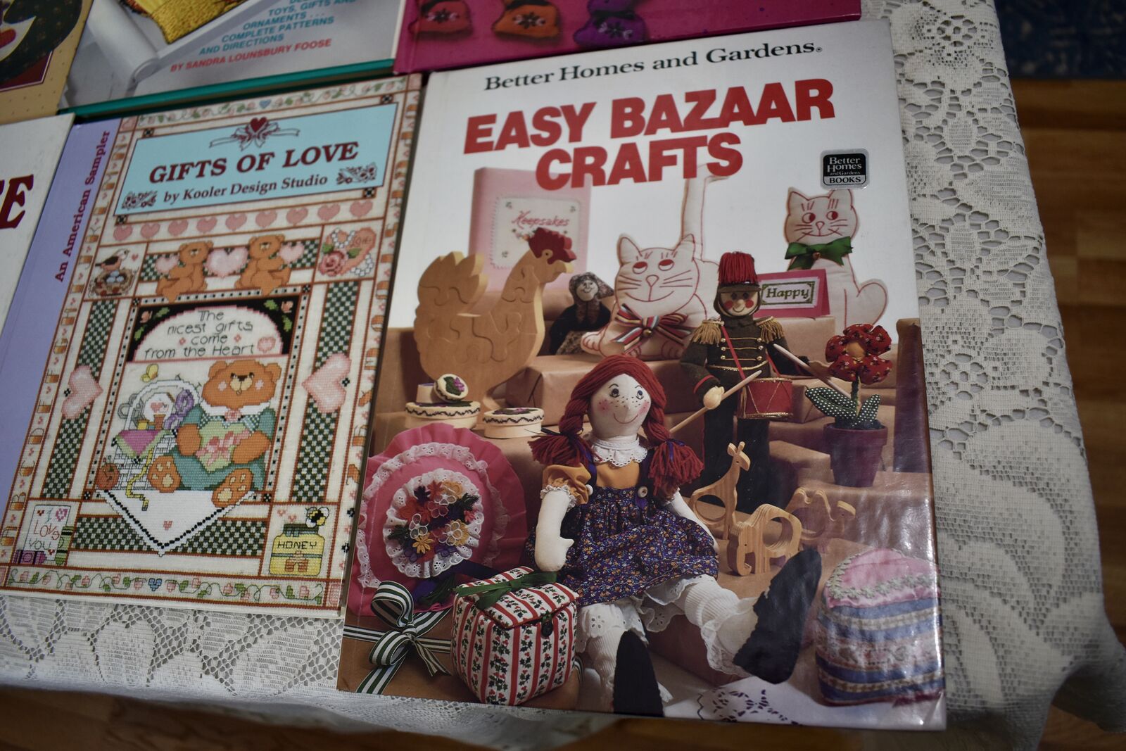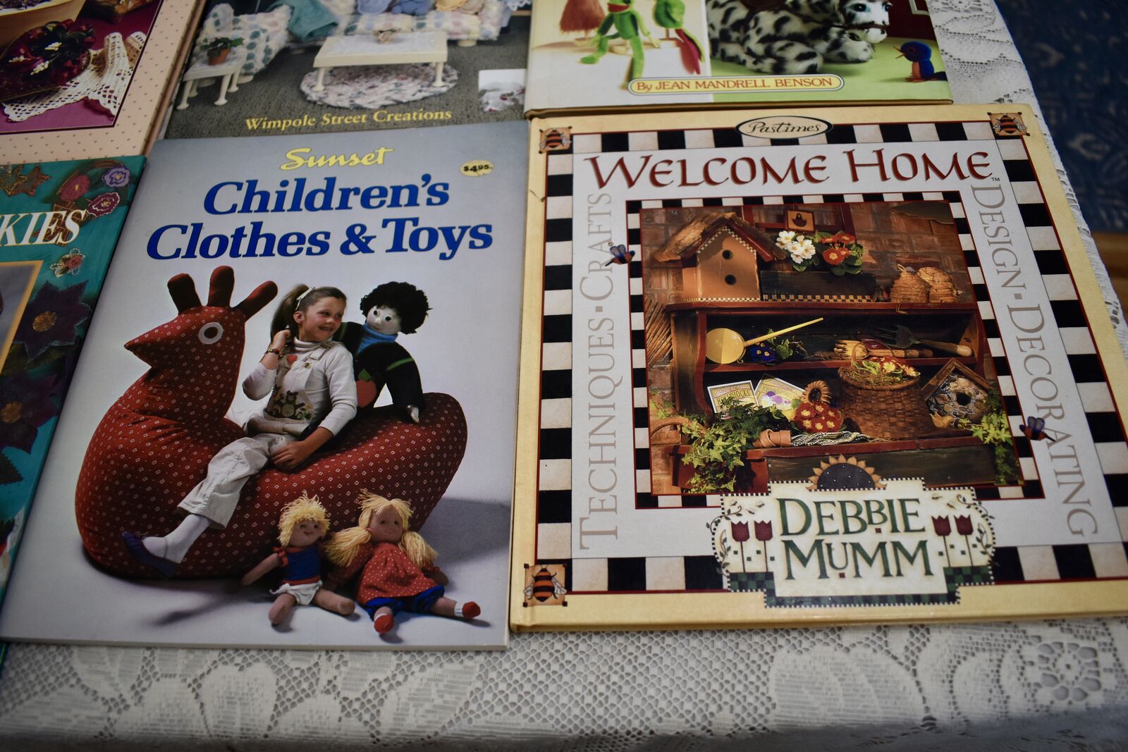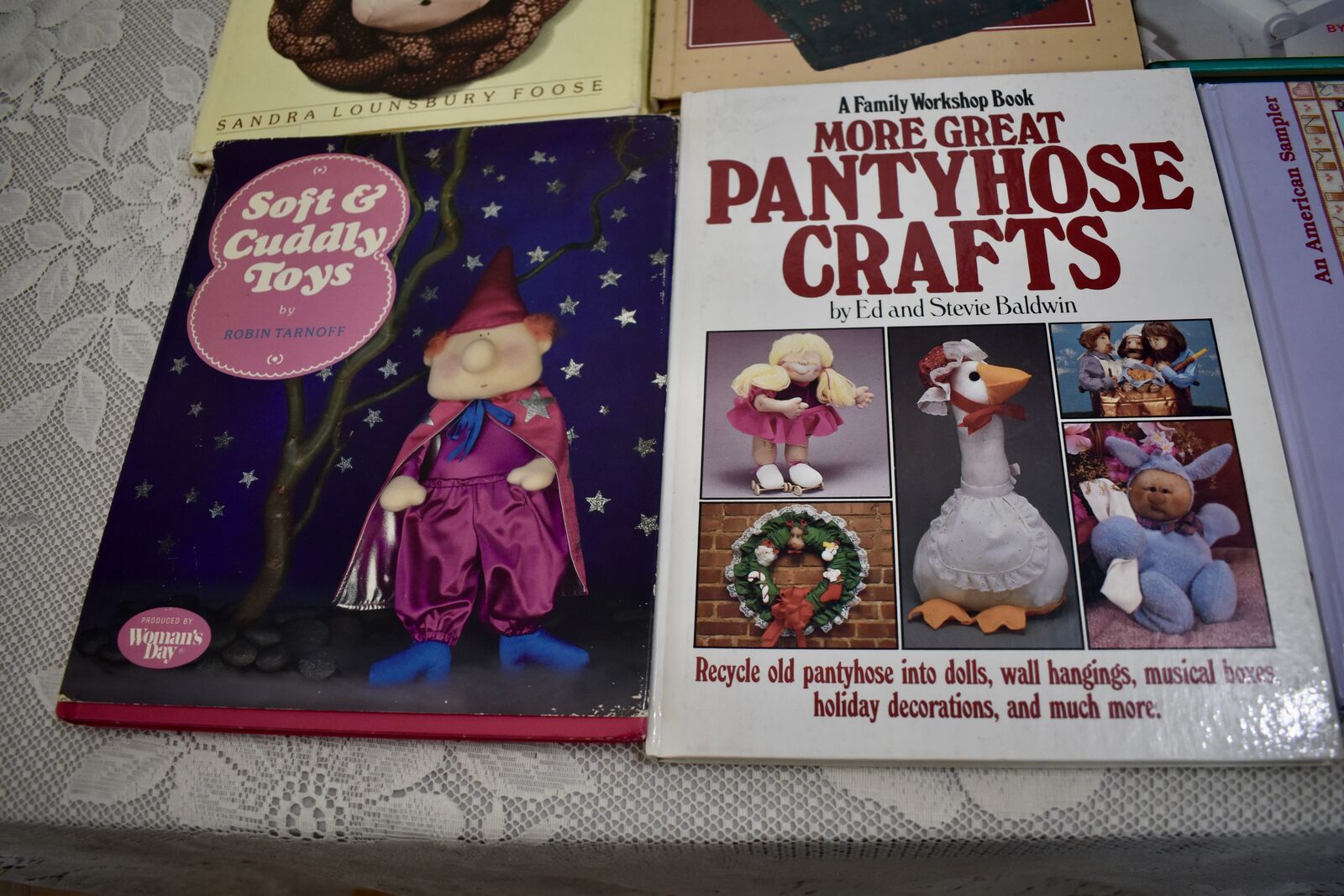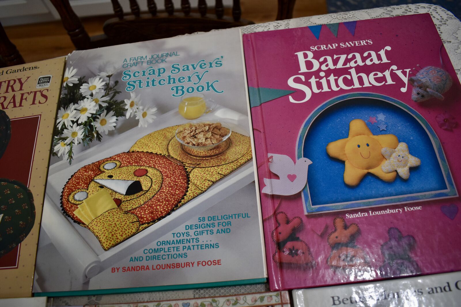 WE HAVE A FEW QUILT BOOKS, A FEW EMBROIDERY BOOKS, BOOKS FOR MAKING THINGS FOR BAZAARS TO SELL, HOUSE DECOR, COUNTRY CRAFTS, ALL KINDS OF NEEDLEWORK CRAFTS, DOLL MAKING, TOY MAKING, WOODWORKING CRAFTS TO CUT AND TO PAINT, MAKING CLOTHING FOR BABIES, SEWING TIPS AND TRICKS AND MORE. Some of them are really big Books that are filled with so many fun things to make.