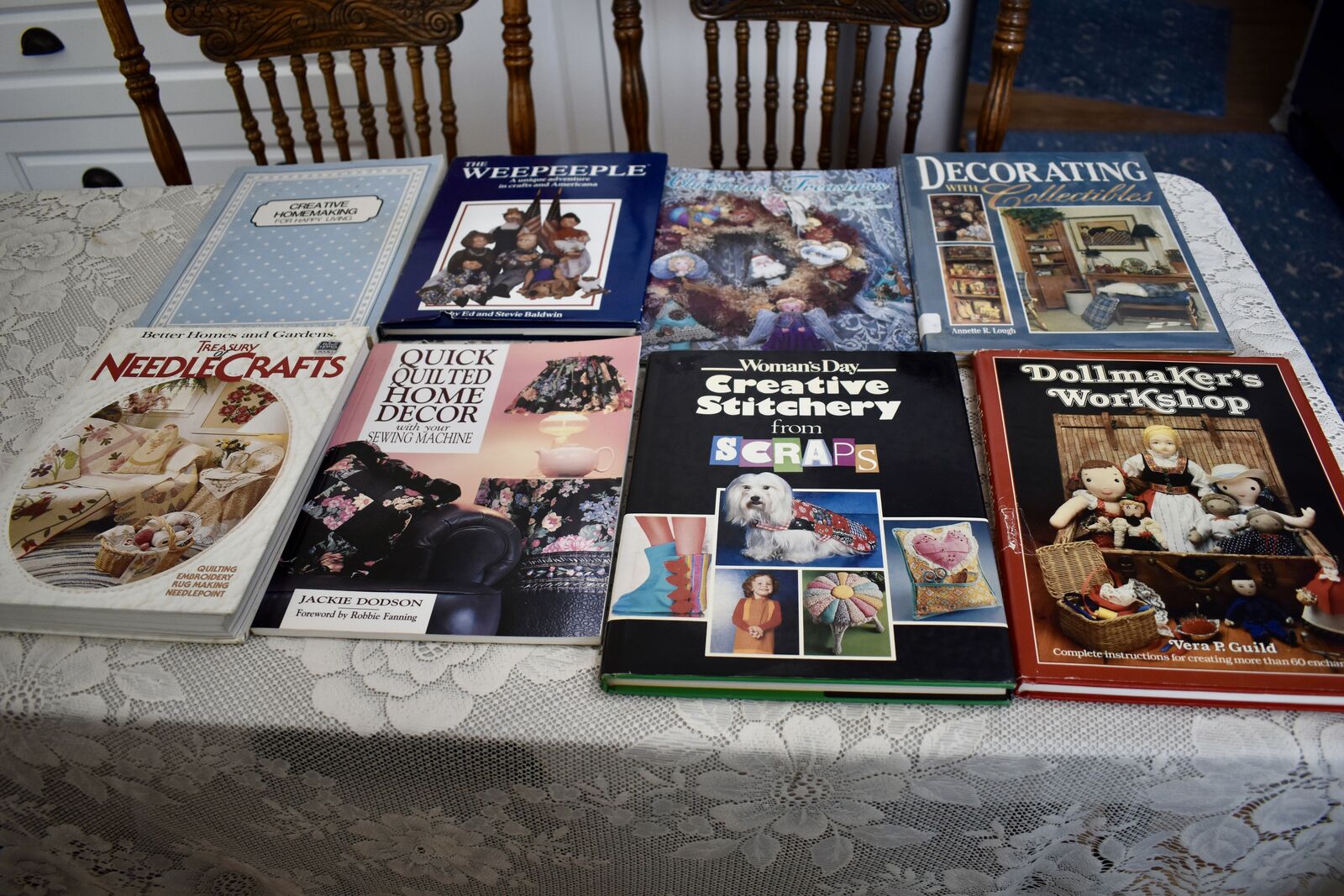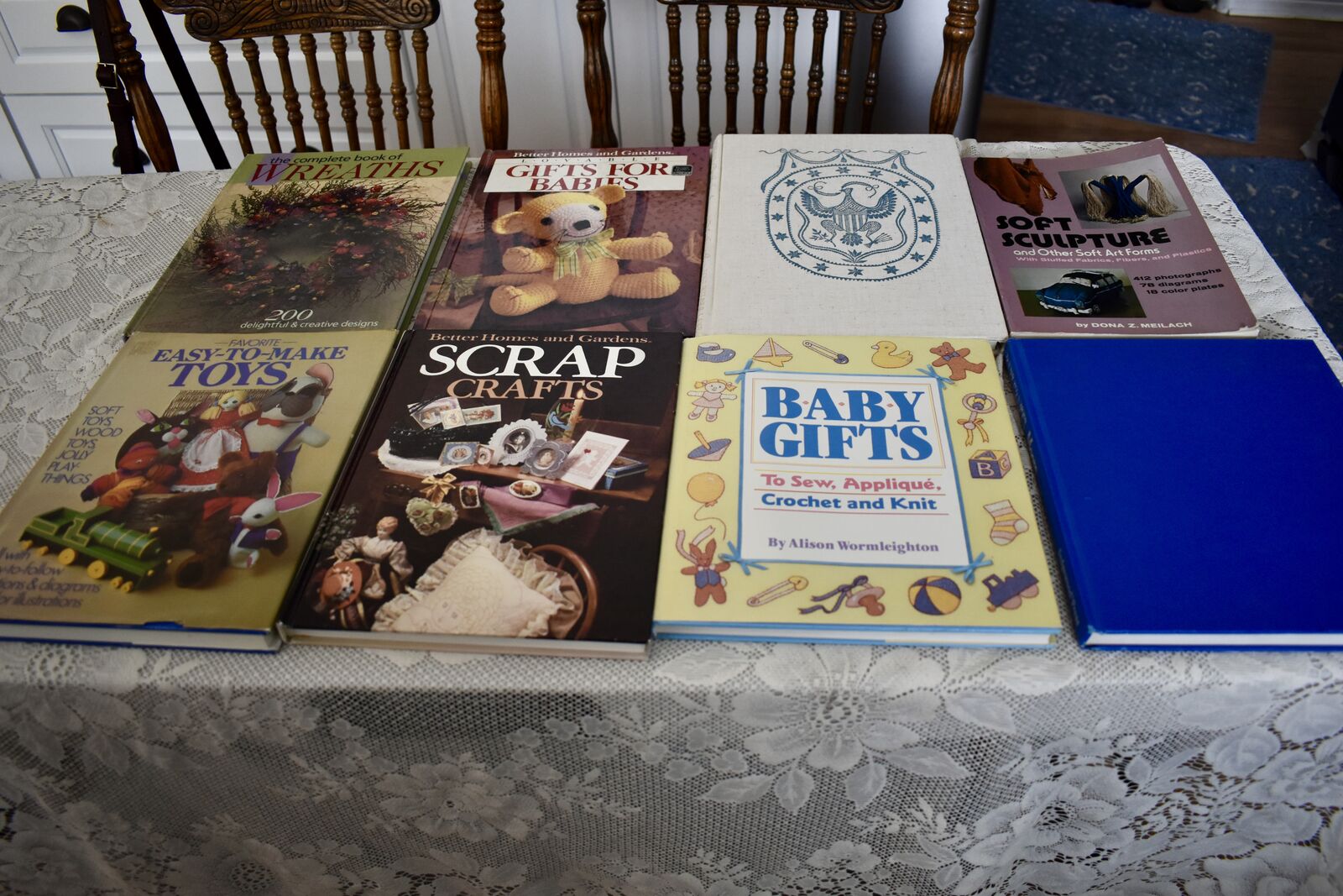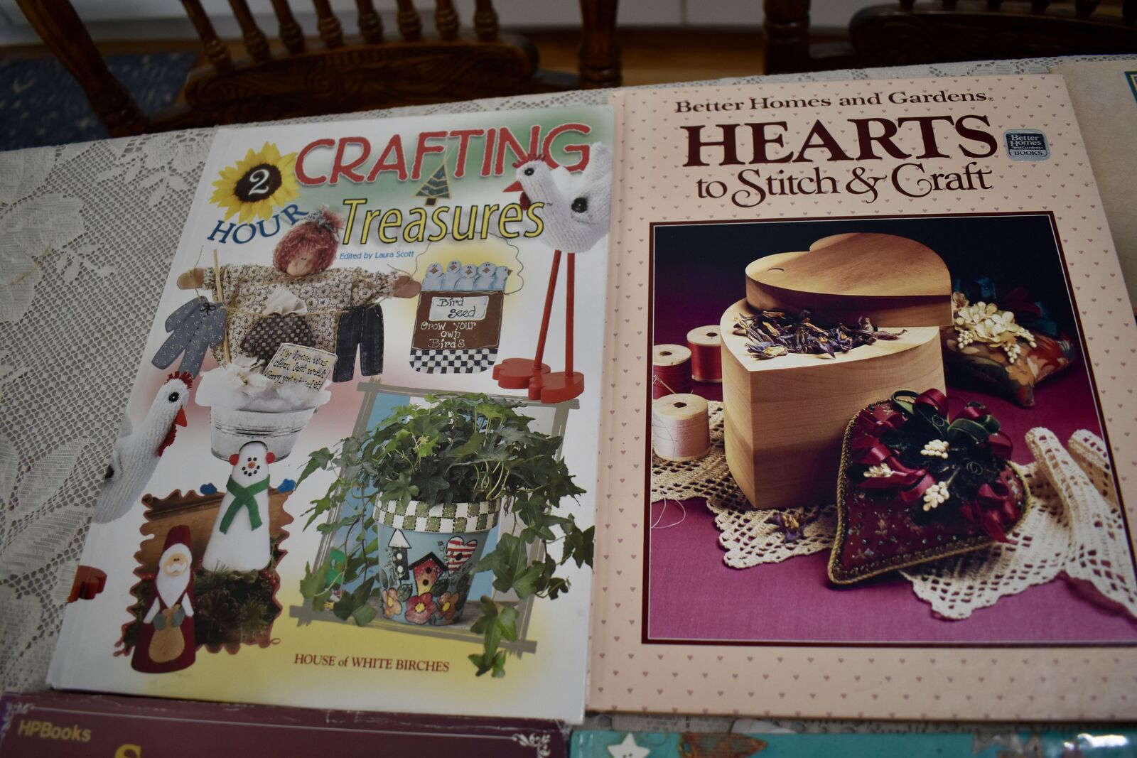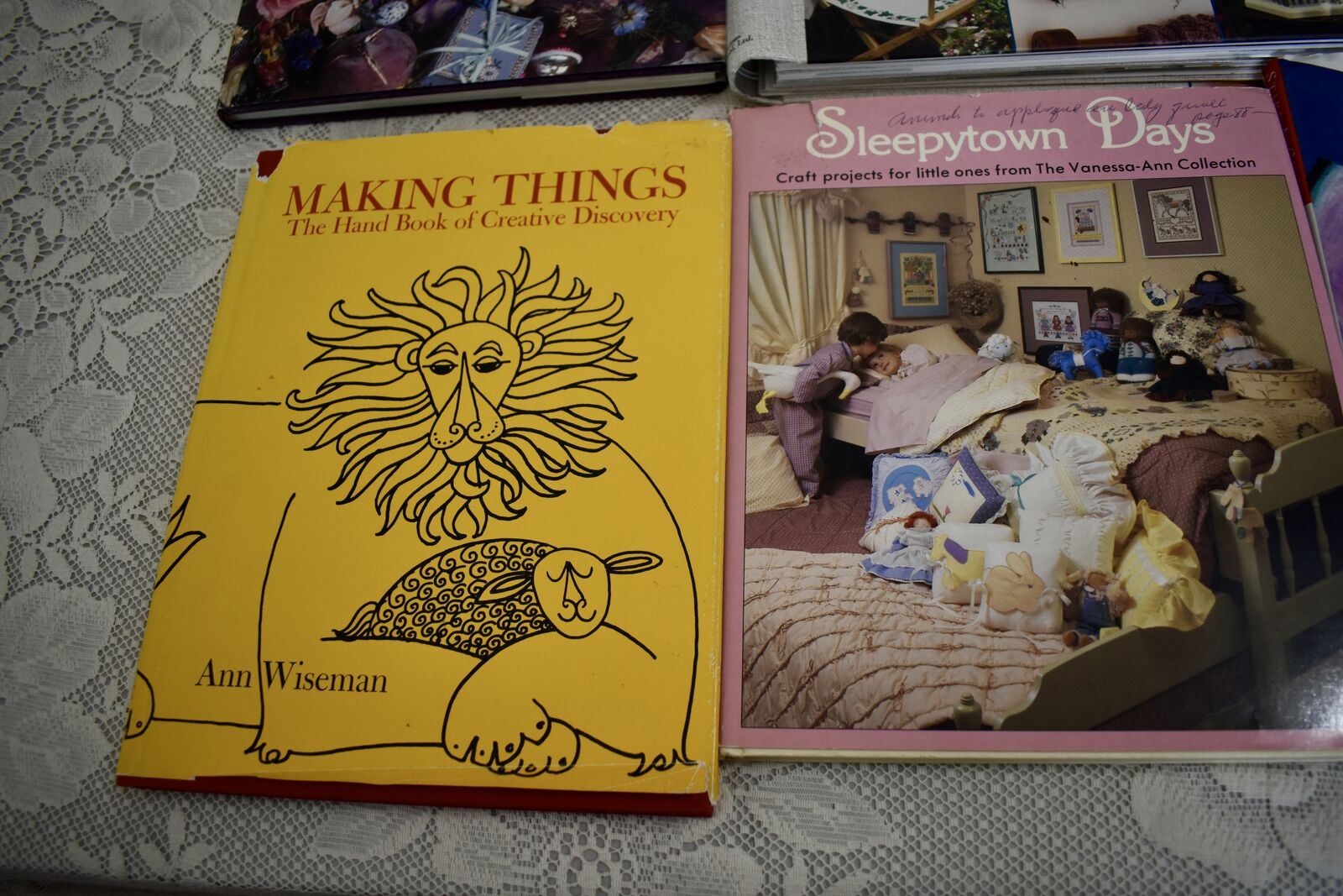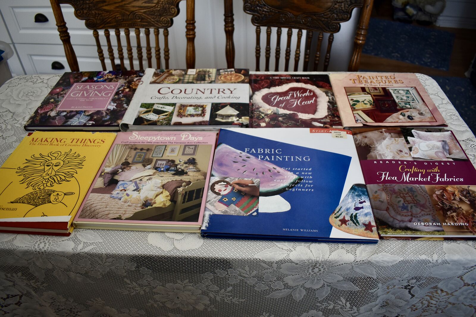 WE HAVE A FEW QUILT BOOKS, A FEW EMBROIDERY BOOKS, BOOKS FOR MAKING THINGS FOR BAZAARS TO SELL, HOUSE DECOR, COUNTRY CRAFTS, ALL KINDS OF NEEDLEWORK CRAFTS, DOLL MAKING, TOY MAKING, WOODWORKING CRAFTS TO CUT AND TO PAINT, MAKING CLOTHING FOR BABIES, SEWING TIPS AND TRICKS AND MORE. Some of them are really big Books that are filled with so many fun things to make.
