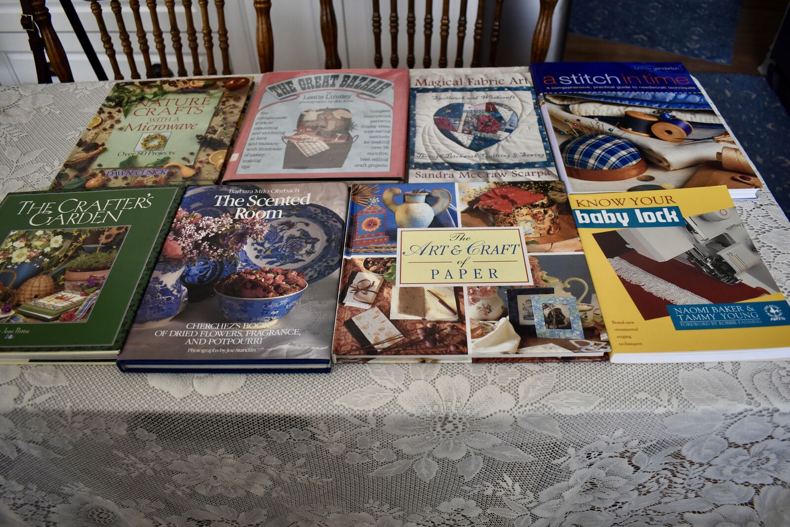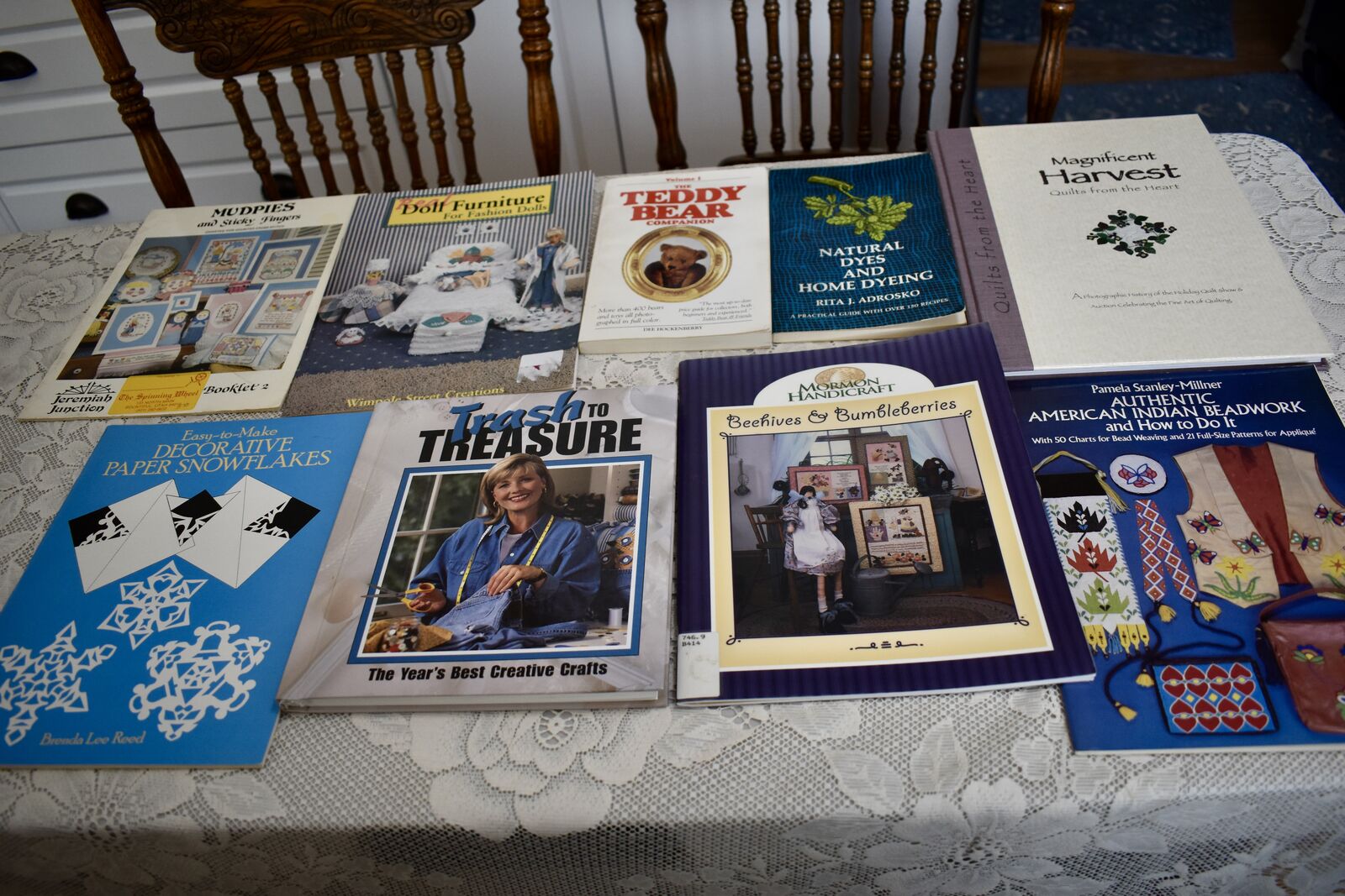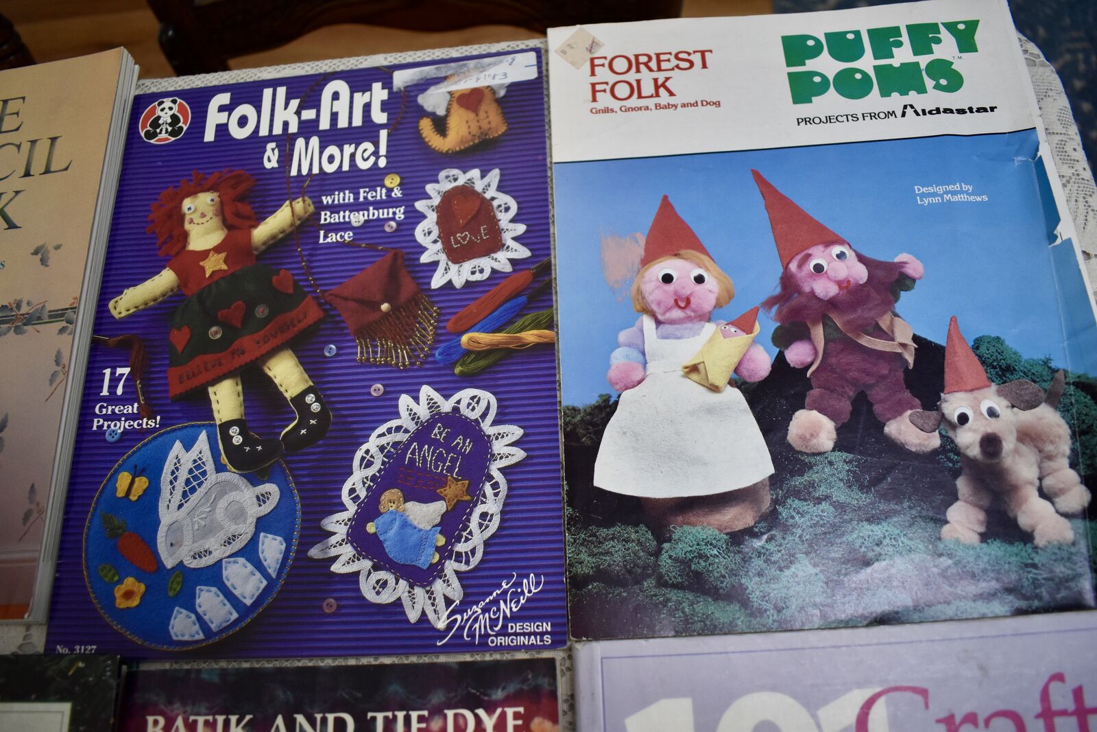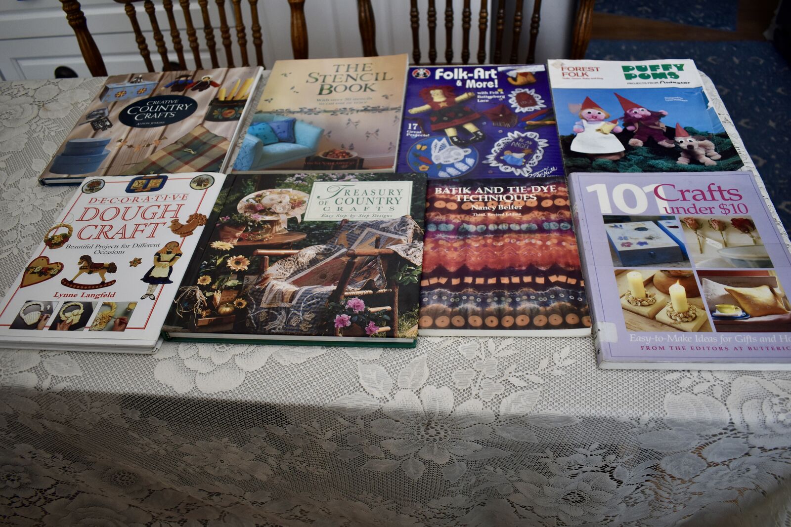 WE HAVE A FEW QUILT BOOKS, A FEW EMBROIDERY BOOKS, BOOKS FOR MAKING THINGS FOR BAZAARS TO SELL, HOUSE DECOR, COUNTRY CRAFTS, ALL KINDS OF NEEDLEWORK CRAFTS, DOLL MAKING, TOY MAKING, WOODWORKING CRAFTS TO CUT AND TO PAINT, MAKING CLOTHING FOR BABIES, SEWING TIPS AND TRICKS AND MORE. Some of them are really big Books that are filled with so many fun things to make.