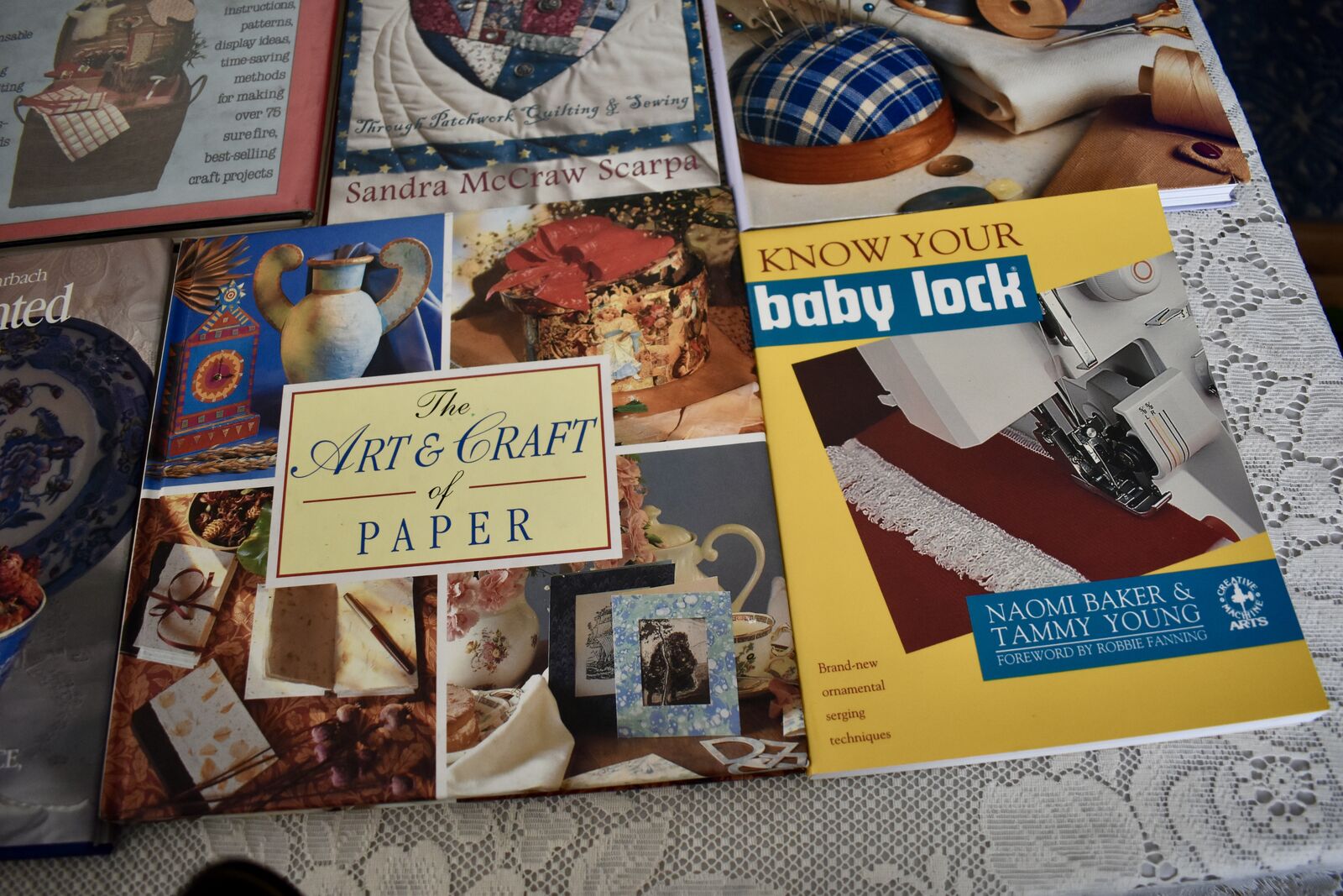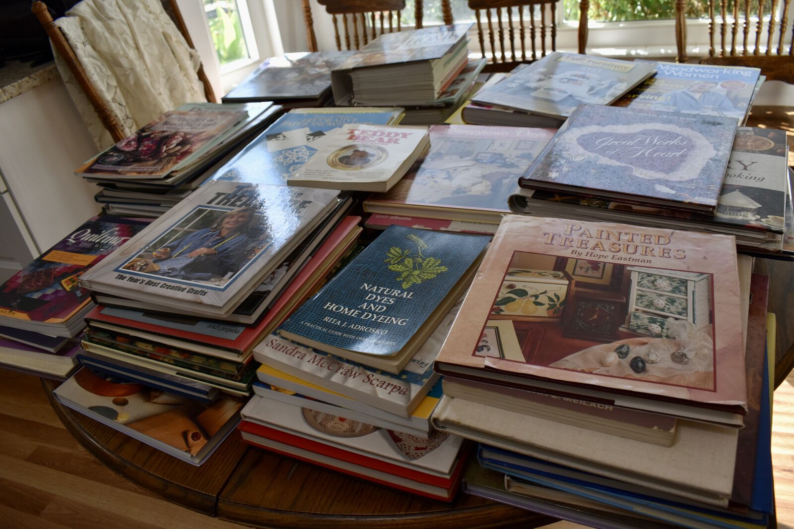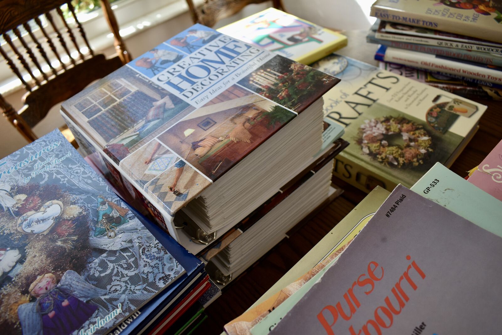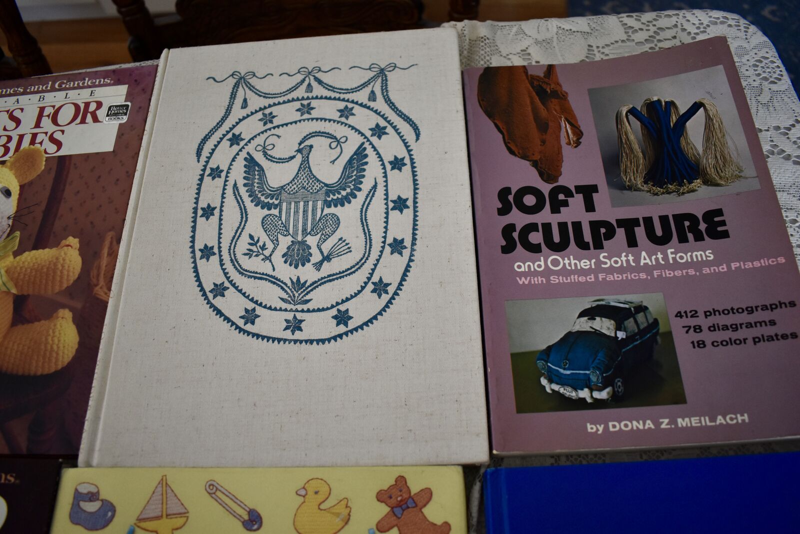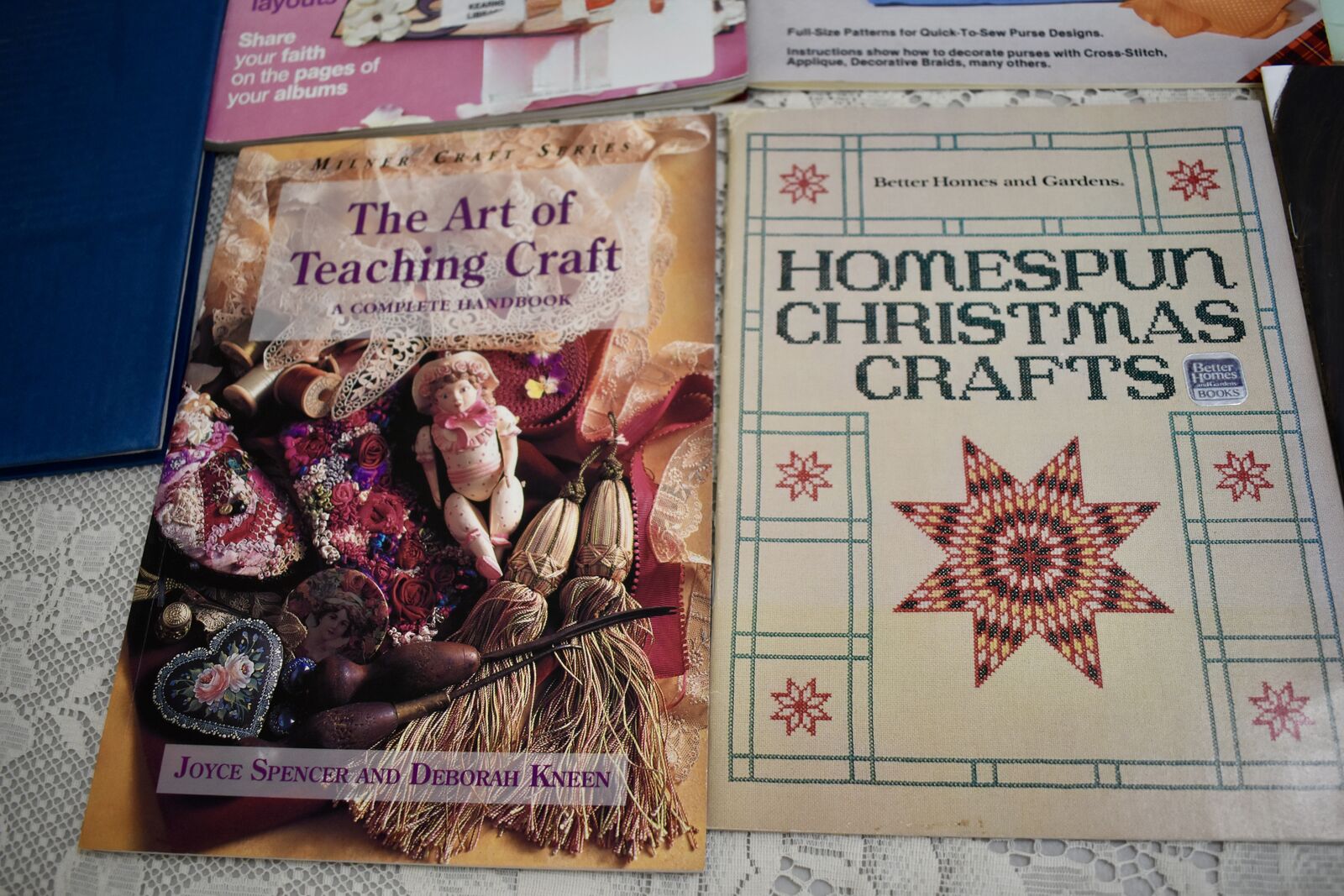 WE HAVE A FEW QUILT BOOKS, A FEW EMBROIDERY BOOKS, BOOKS FOR MAKING THINGS FOR BAZAARS TO SELL, HOUSE DECOR, COUNTRY CRAFTS, ALL KINDS OF NEEDLEWORK CRAFTS, DOLL MAKING, TOY MAKING, WOODWORKING CRAFTS TO CUT AND TO PAINT, MAKING CLOTHING FOR BABIES, SEWING TIPS AND TRICKS AND MORE. Some of them are really big Books that are filled with so many fun things to make.