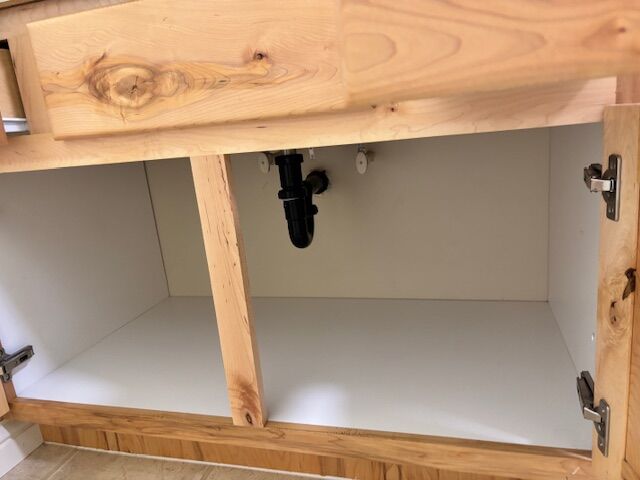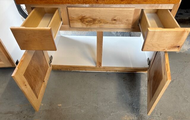This vanity is very practical as it has drawers for small things and doors. Pictures attached.