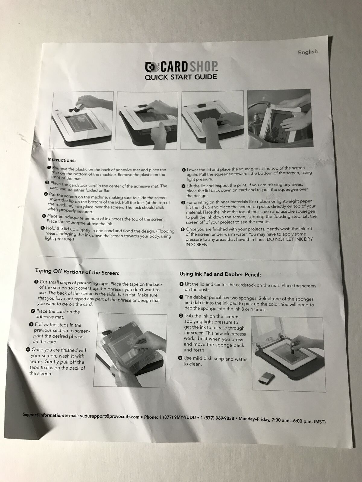 Yudu Cardshop Personal Card Screen-Printer & Squeegee. Picture of instructions is for reference only and not included when you purchase.
