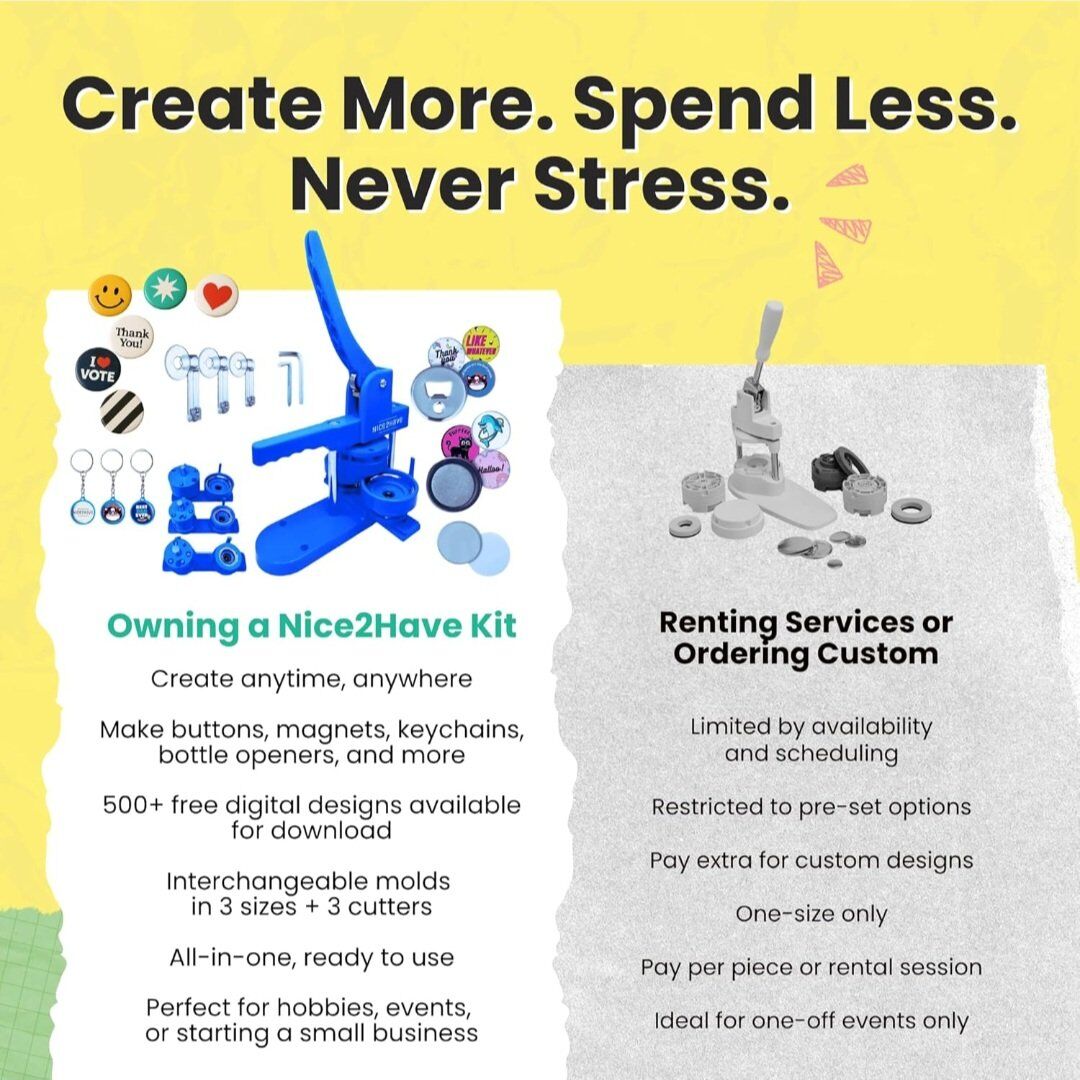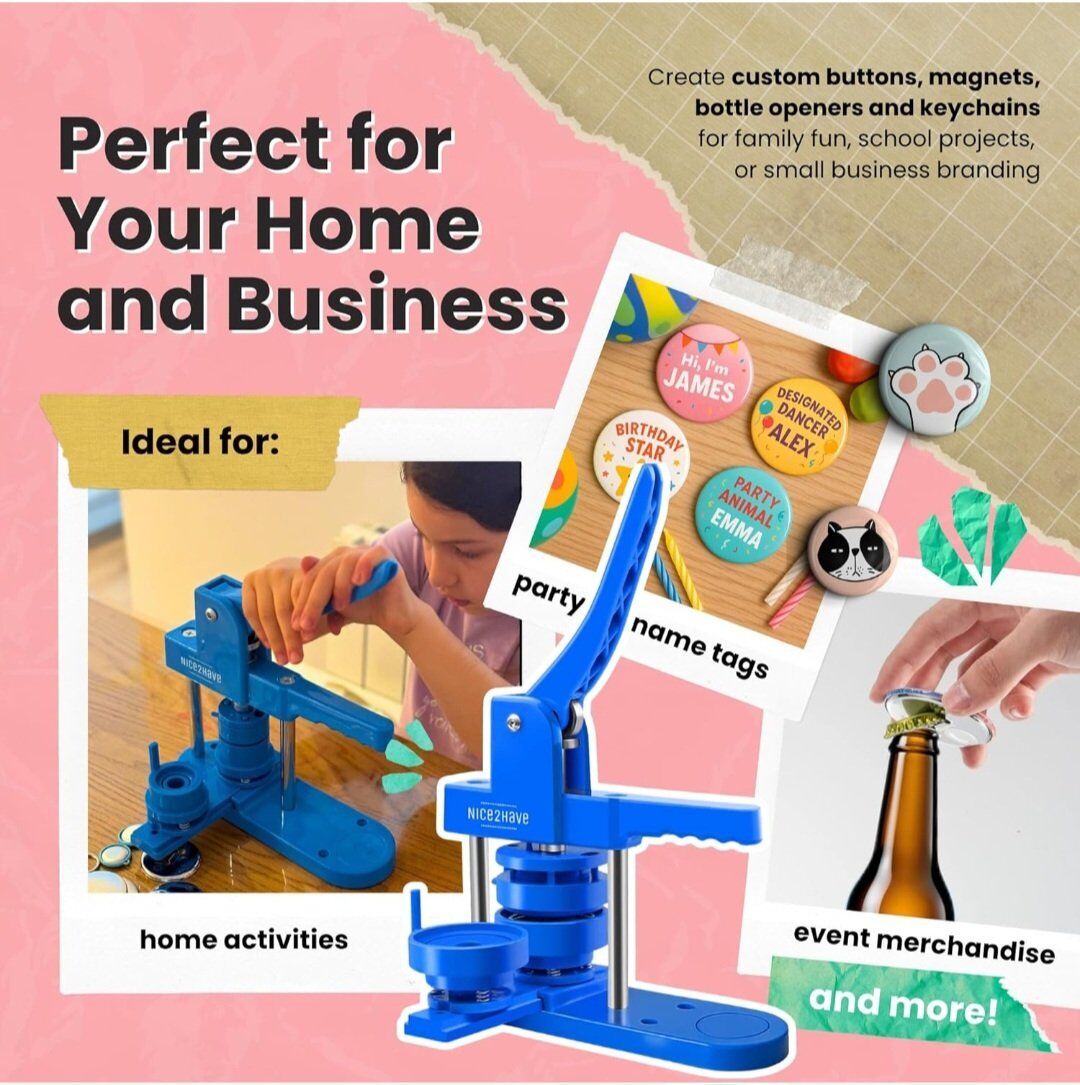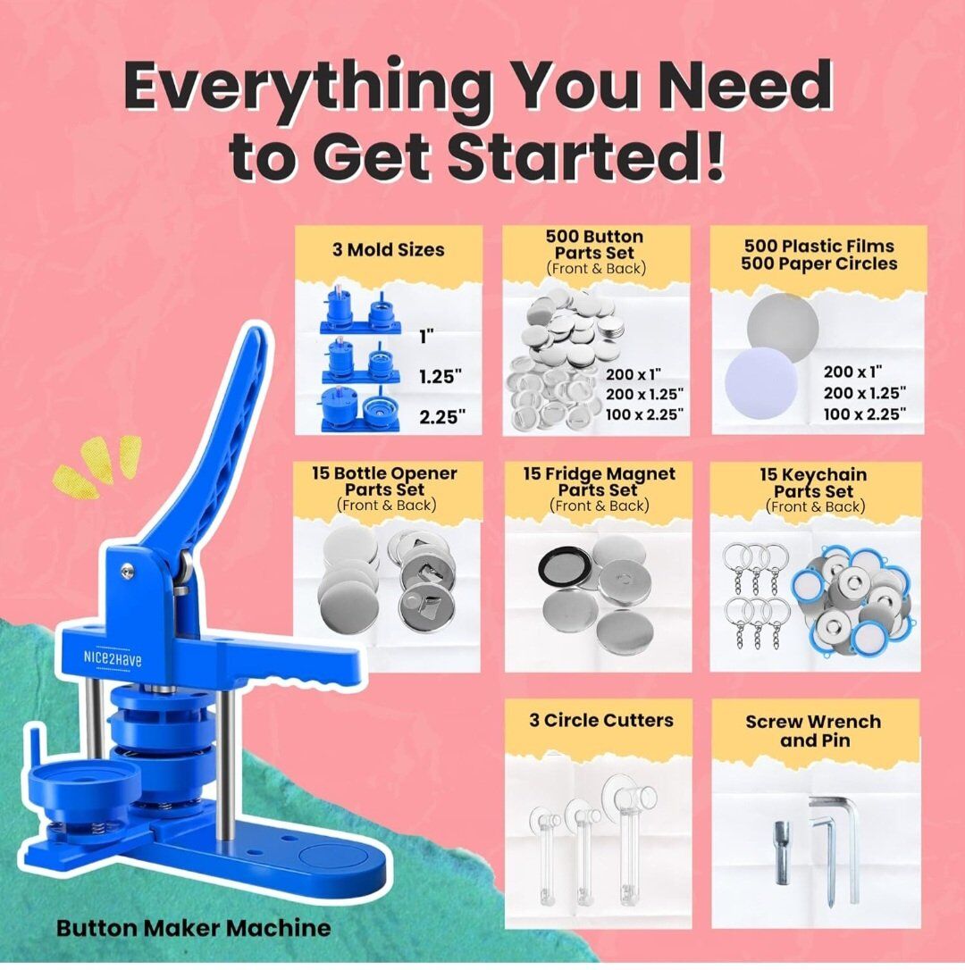 Button Maker Machine – Multiple Size Molds– Pin Maker Machine Kit w/ 500 Buttons, 15 Fridge Magnets, 15 Bottle Openers, 15 Keychain Buttons, Cutters & 500+ Button Designs for DIY Crafts. New. cash only please