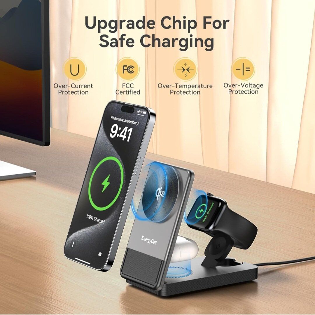 3 in 1 Wireless Charging Station, Qi2 Certified, 15W Fast Charger for iPhone 16/15/14/13/12 Series, Apple Watch, AirPods Portable Travel Dock for Apple Device. New. Cash only please